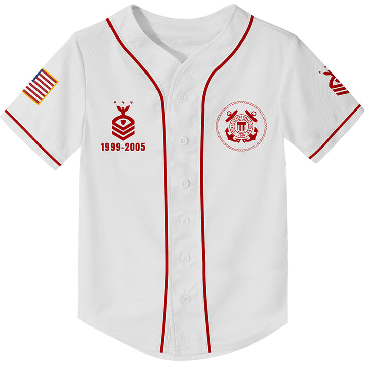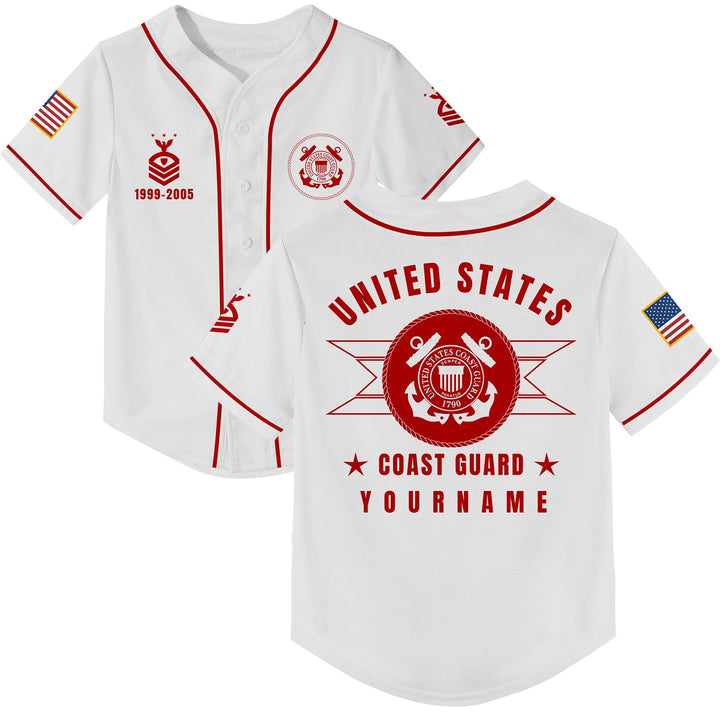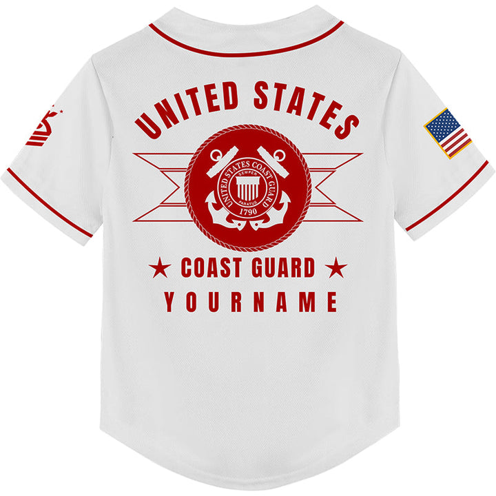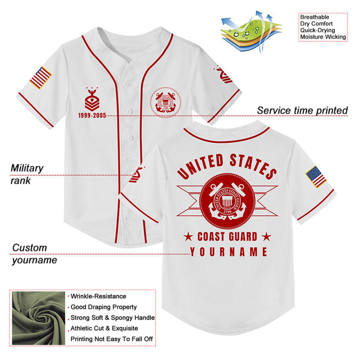 Custom White U.S Coast Guard Military Rank Veteran Name Baseball Jersey