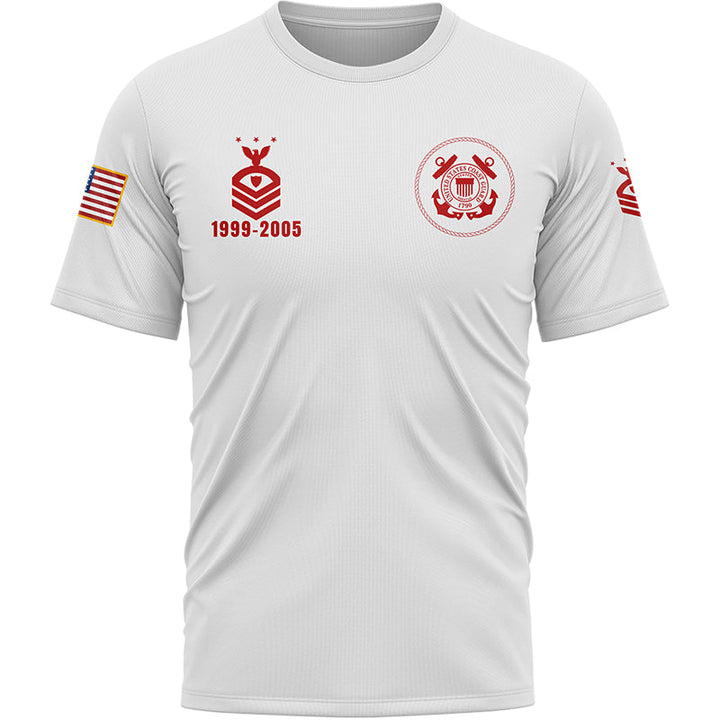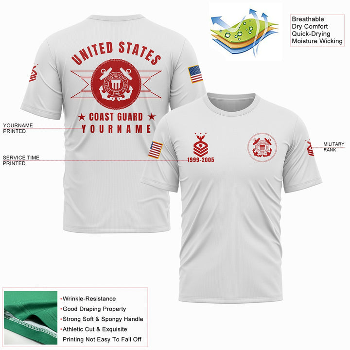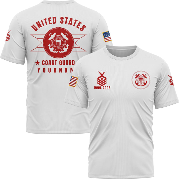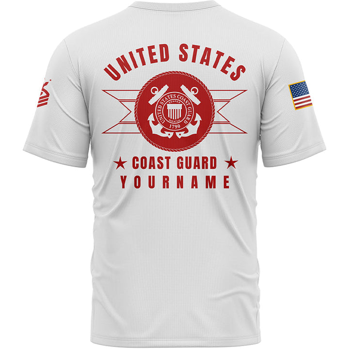 Custom White U.S Coast Guard Military Rank Veteran Name T-Shirt
