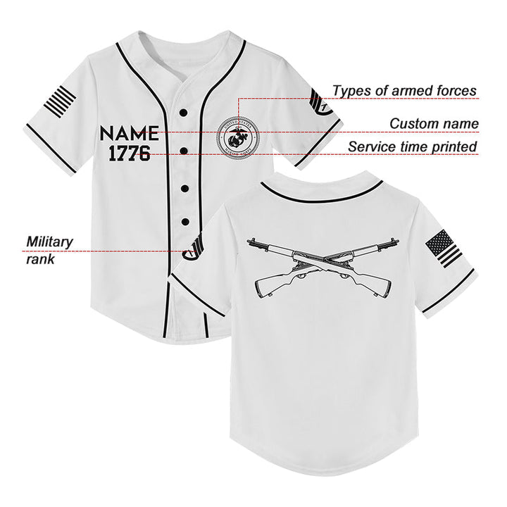 Custom White U.S Marine Corps Military Rank Veteran Name Baseball Jersey