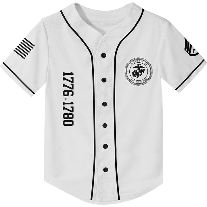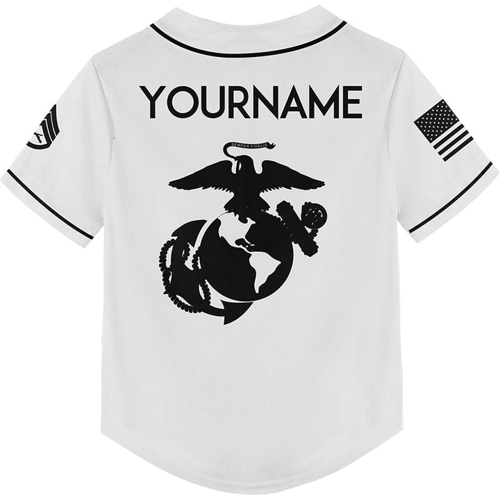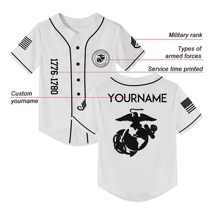 Custom White U.S Marine Corps Military Rank Veteran Name Baseball Jersey