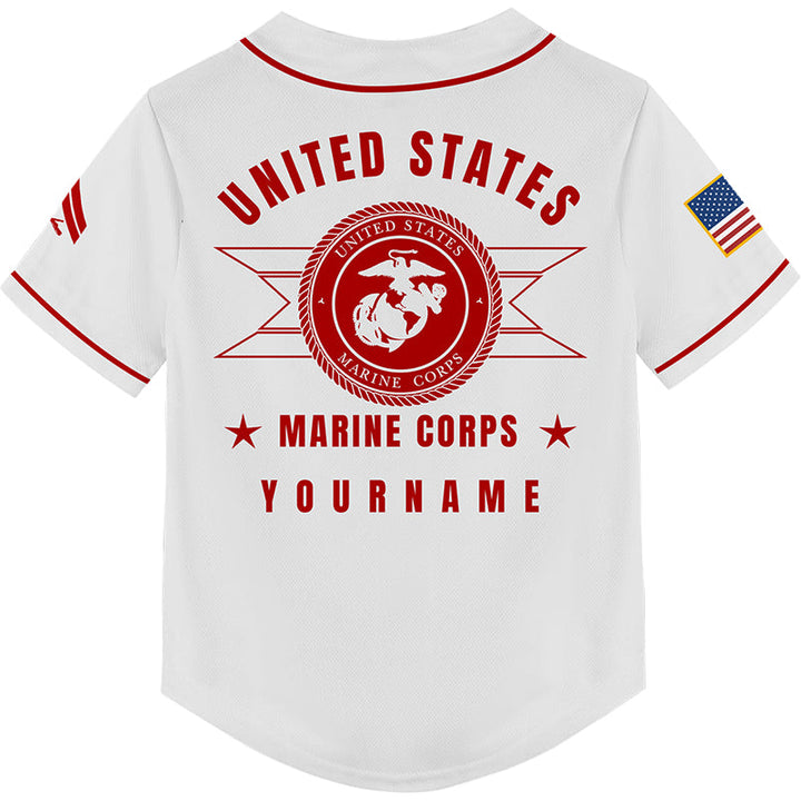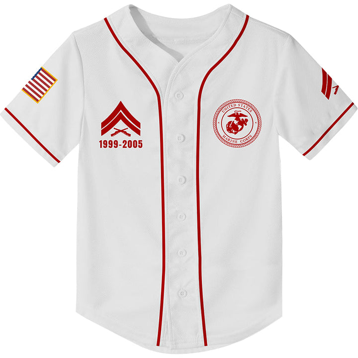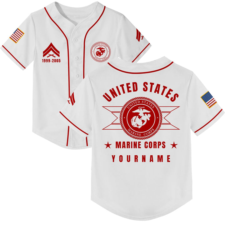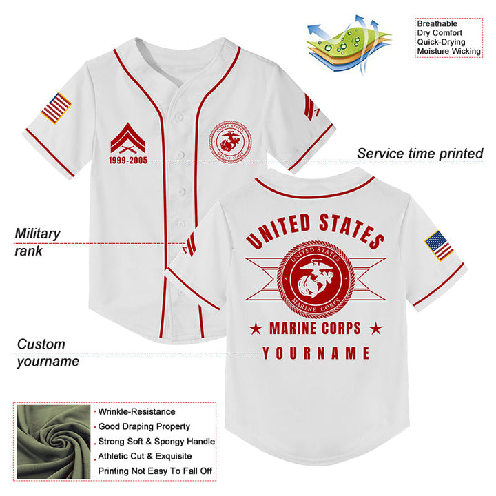 Custom White U.S Marine Corps Military Rank Veteran Name Baseball Jersey