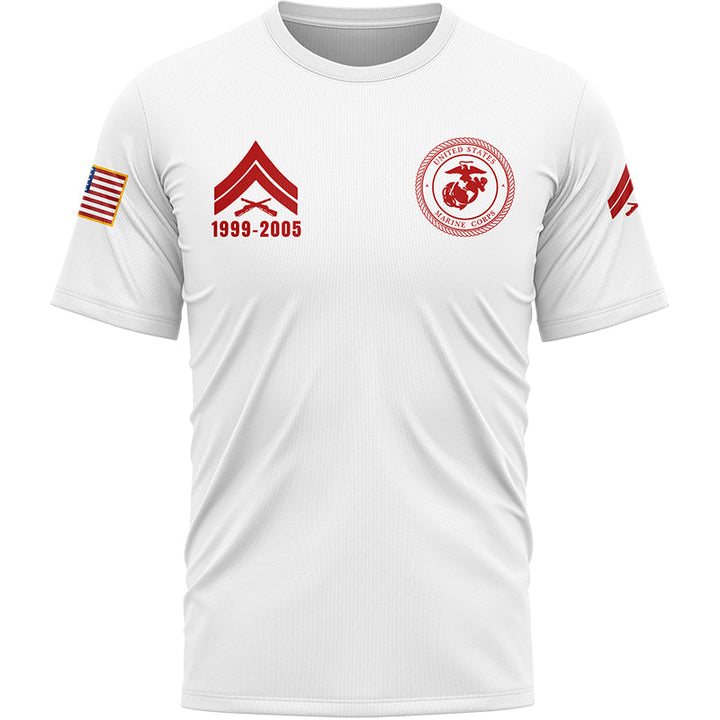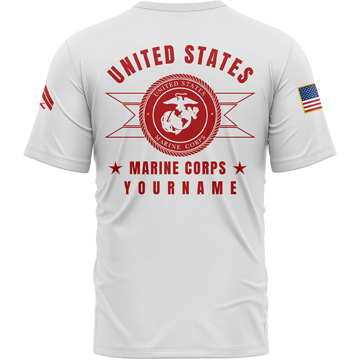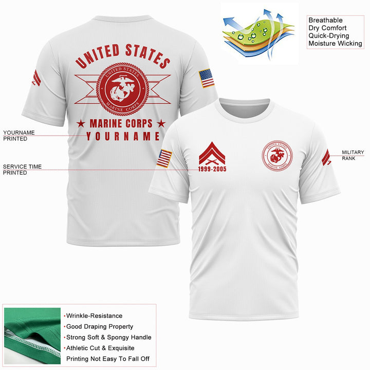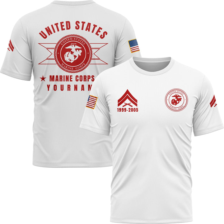 Custom White U.S Marine Corps Military Rank Veteran Name T-Shirt