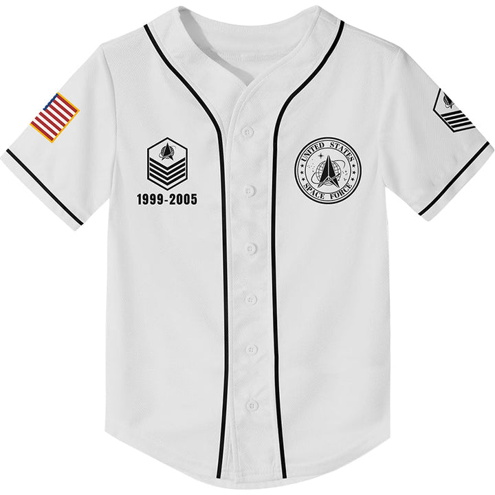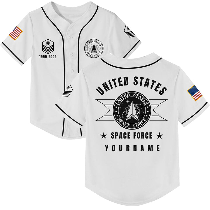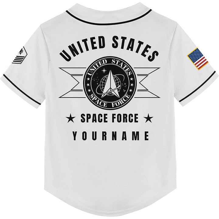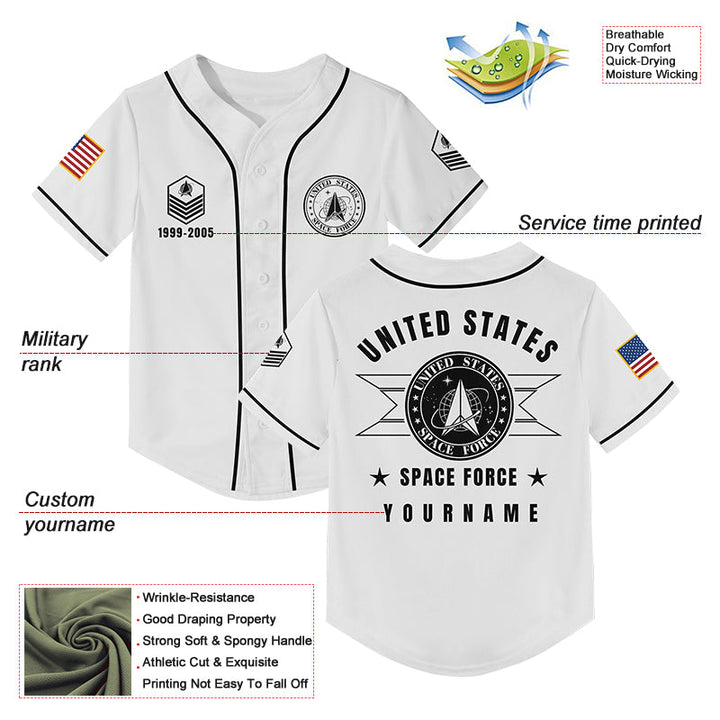Custom White U.S Space Force Military Rank Veteran Name Baseball Jersey