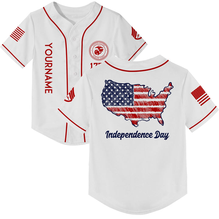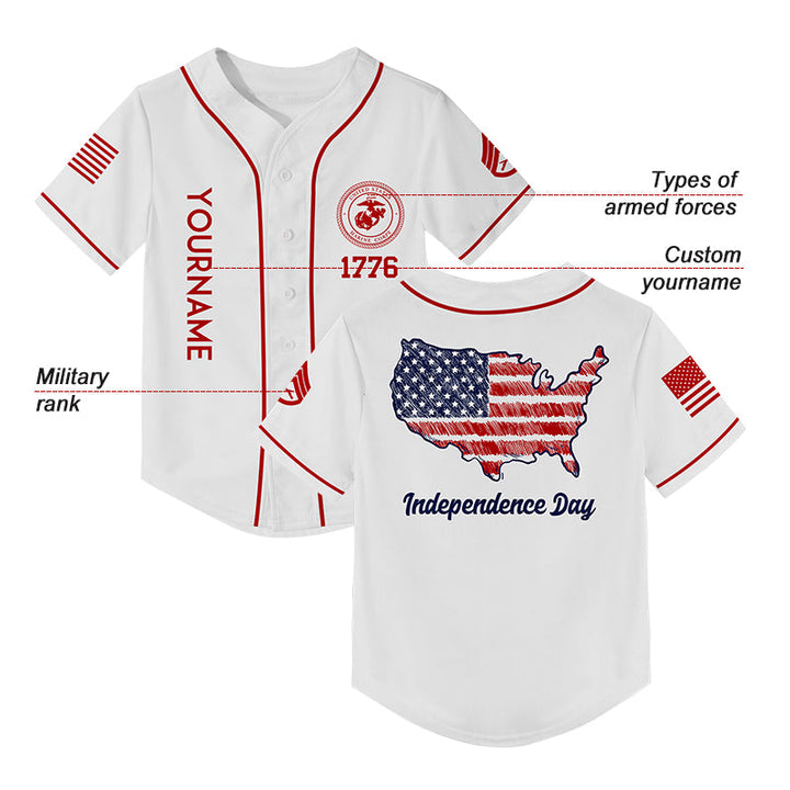 Custom White USA Map Military Rank Name Independence Day Baseball Jersey