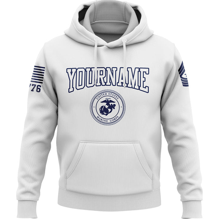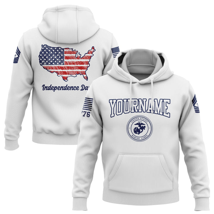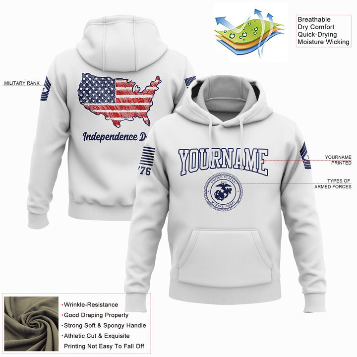 Custom White USA Map Military Rank Name Independence Day Hoodie | Father's Day Gifts
