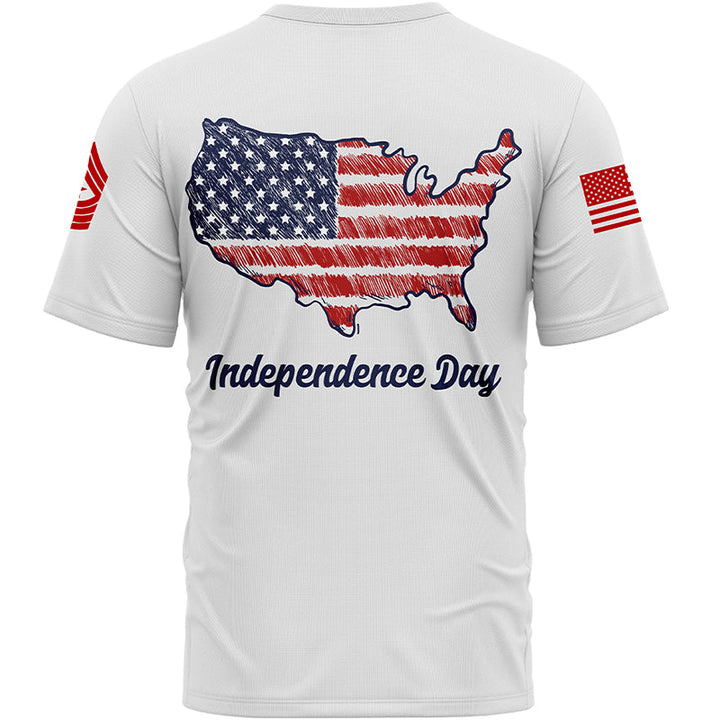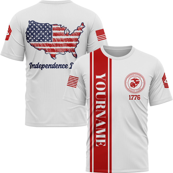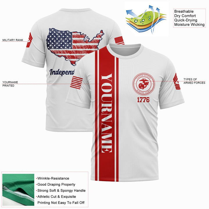Custom White USA Map Military Rank Name Independence Day T-Shirt