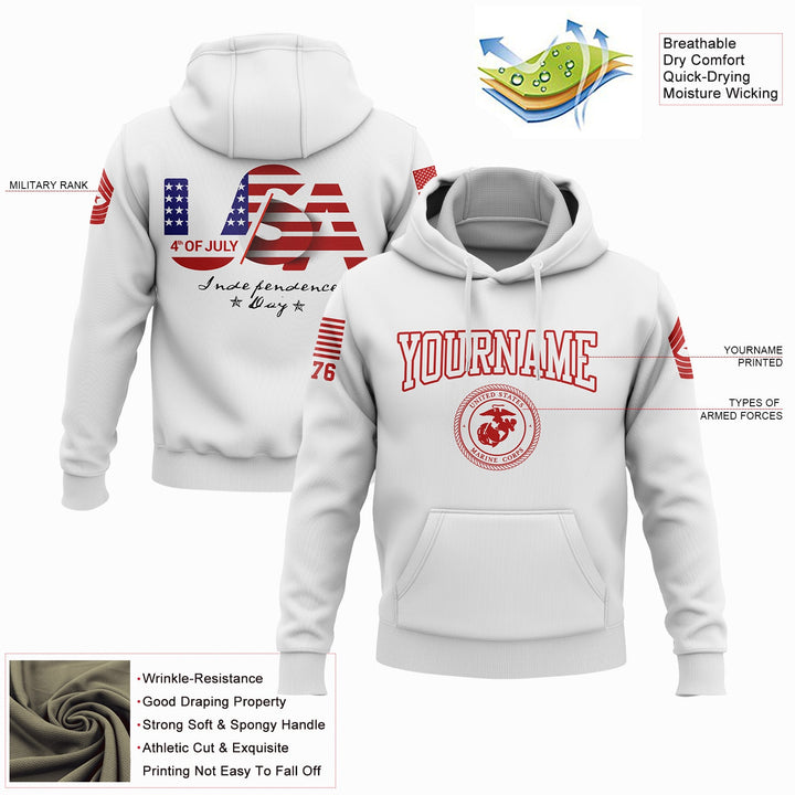Custom White USA Military Rank Name Independence Day Hoodie | Father's Day Gifts