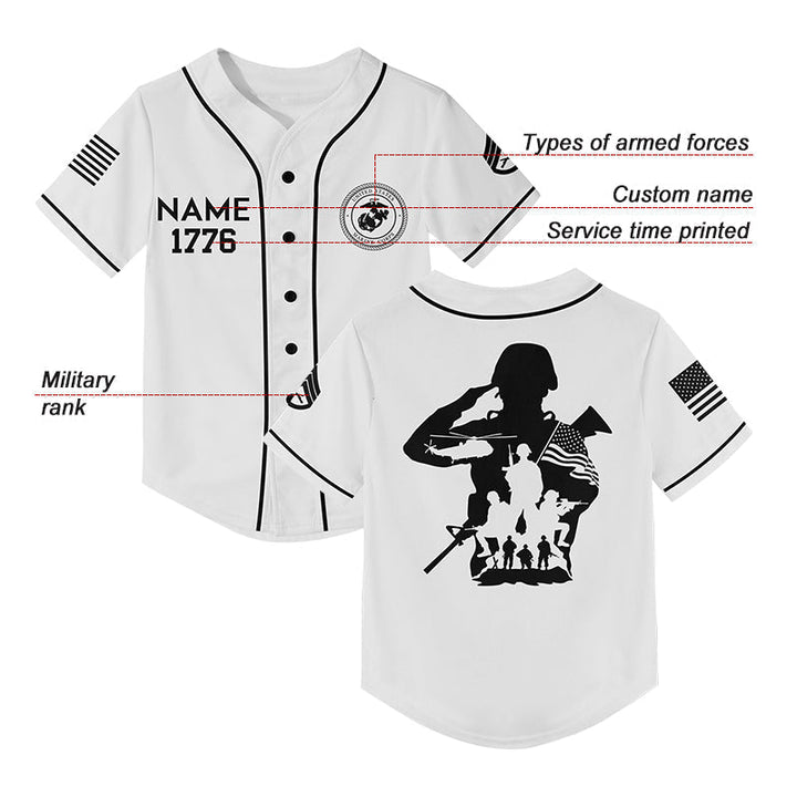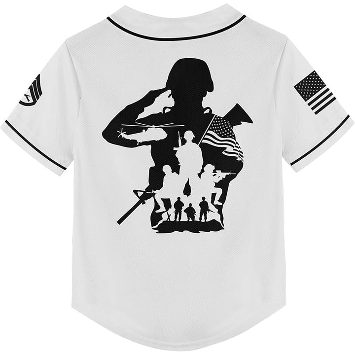 Custom White USA Military Rank Veteran Name Baseball Jersey