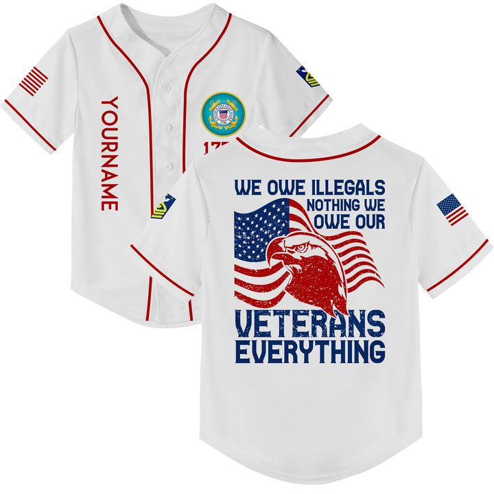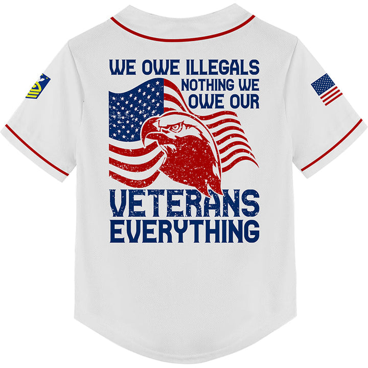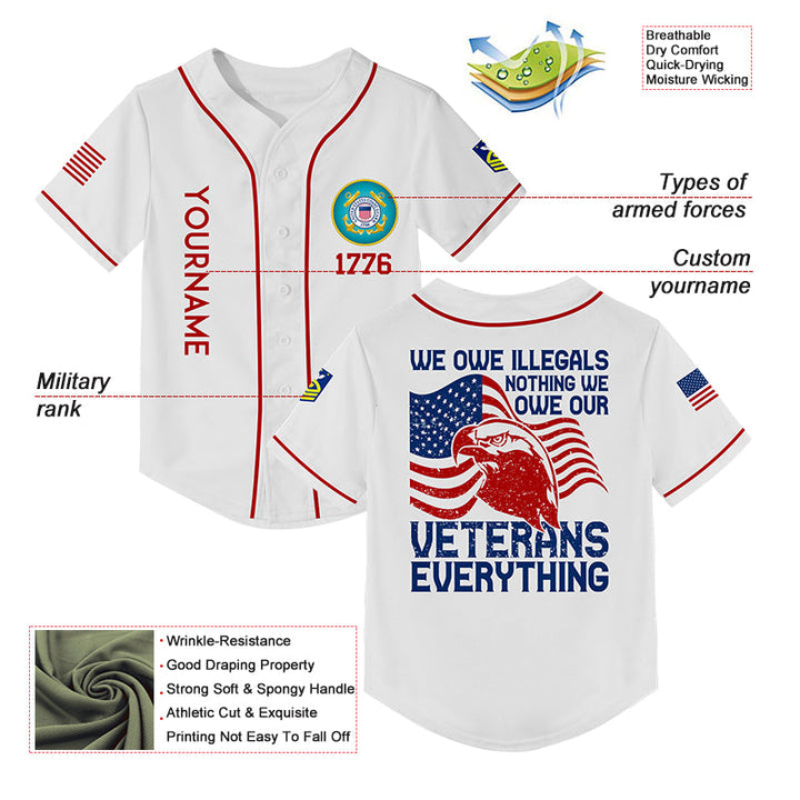 Custom White We Own Illegals Nothing We Our Veterans Everything 1776 Military Rank Name Veterans Day Baseball Jersey