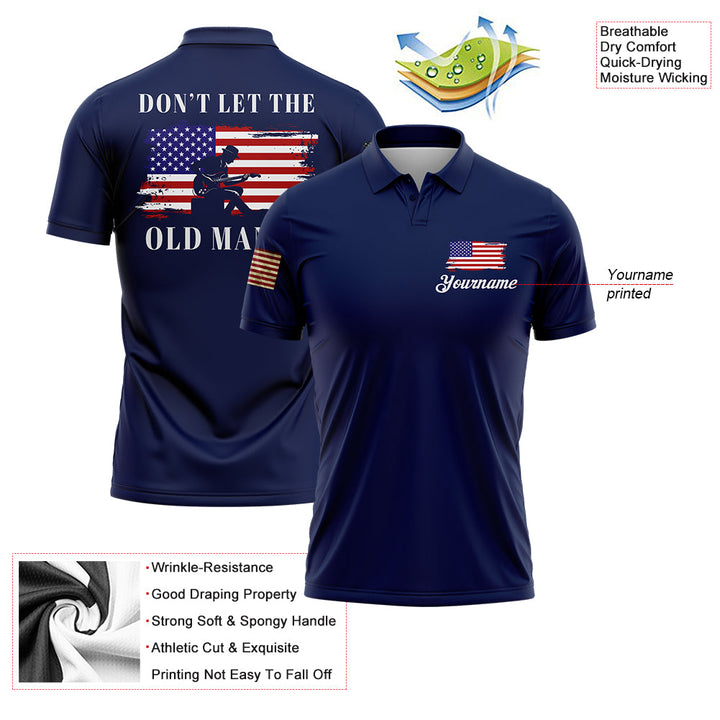 Don't Let The Old Man In Custom Navy American Patriot Name Golf Polo Shirt