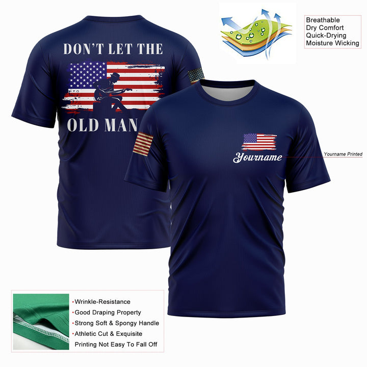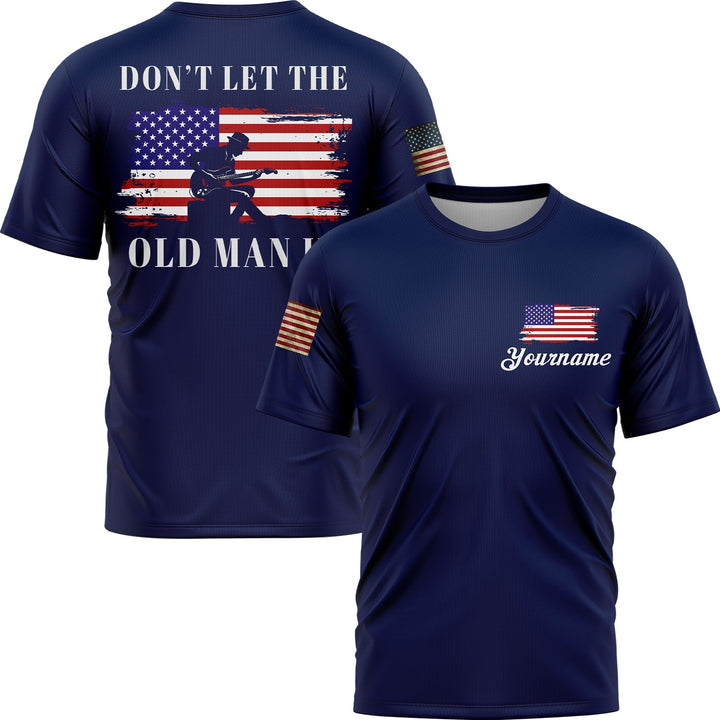 Don't Let The Old Man In Custom Navy American Patriot Name T-Shirt