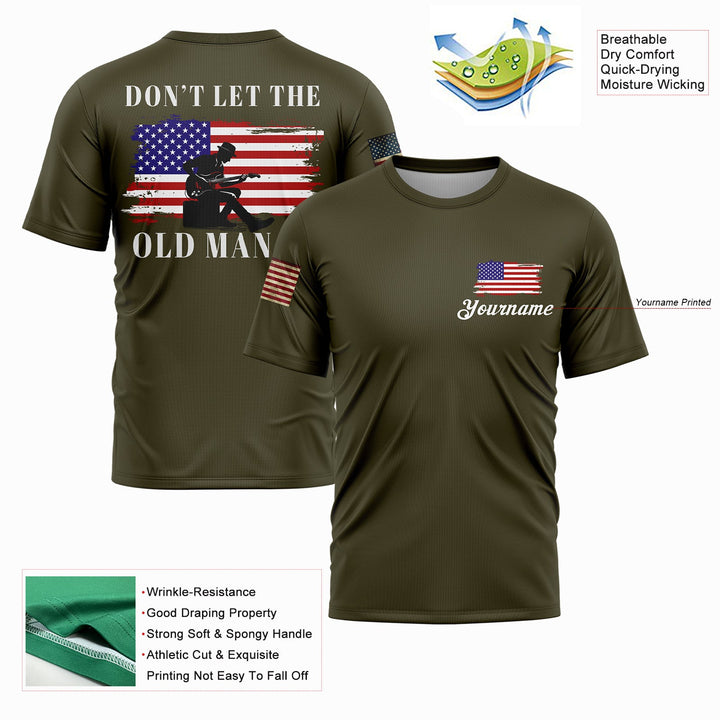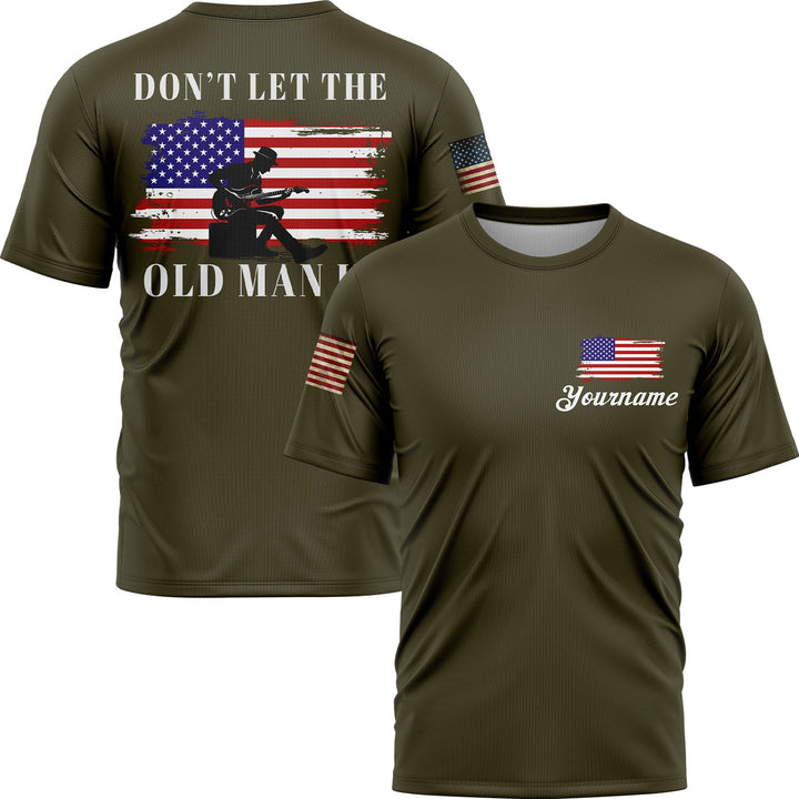 Don't Let The Old Man In Custom Olive American Patriot Name T-Shirt