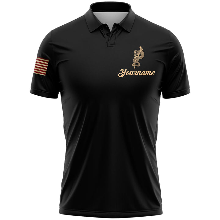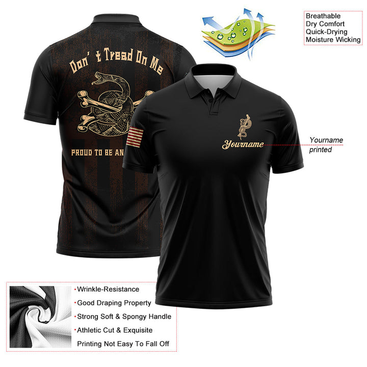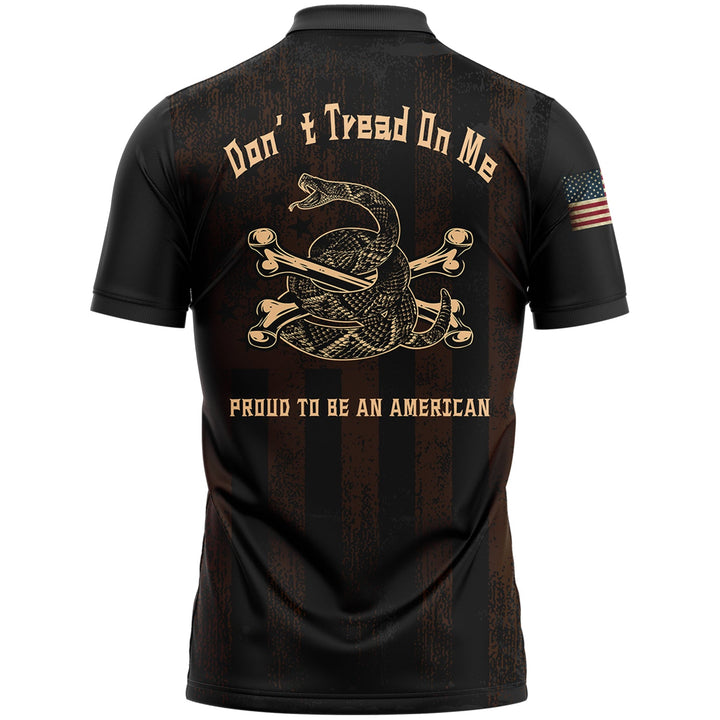 Don't Tread On Me Proud To Be An American Custom Black American Patriot Name Golf Polo Shirt