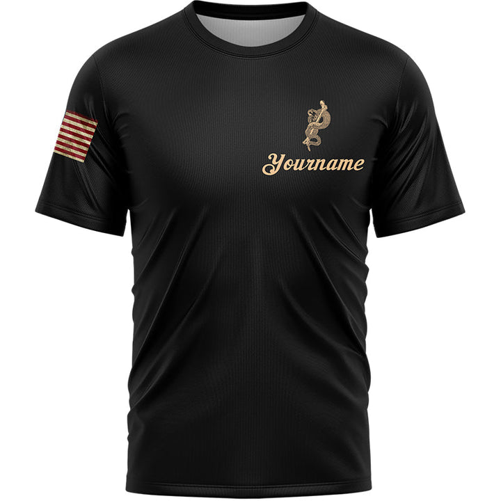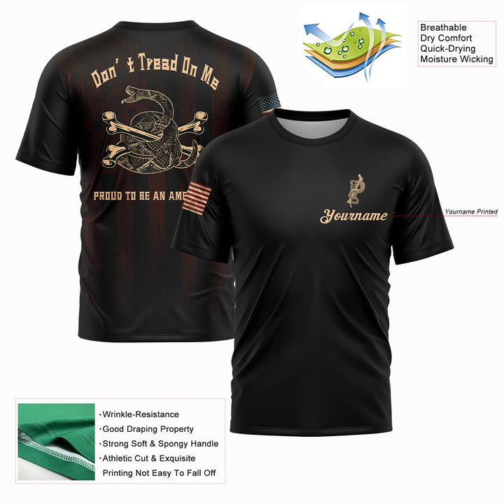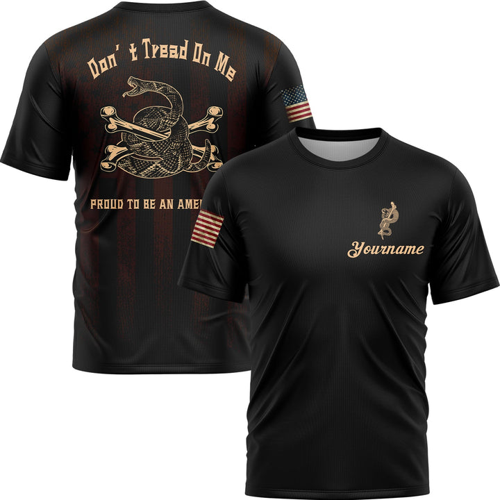 Don't Tread On Me Proud To Be An American Custom Black American Patriot Name T-Shirt