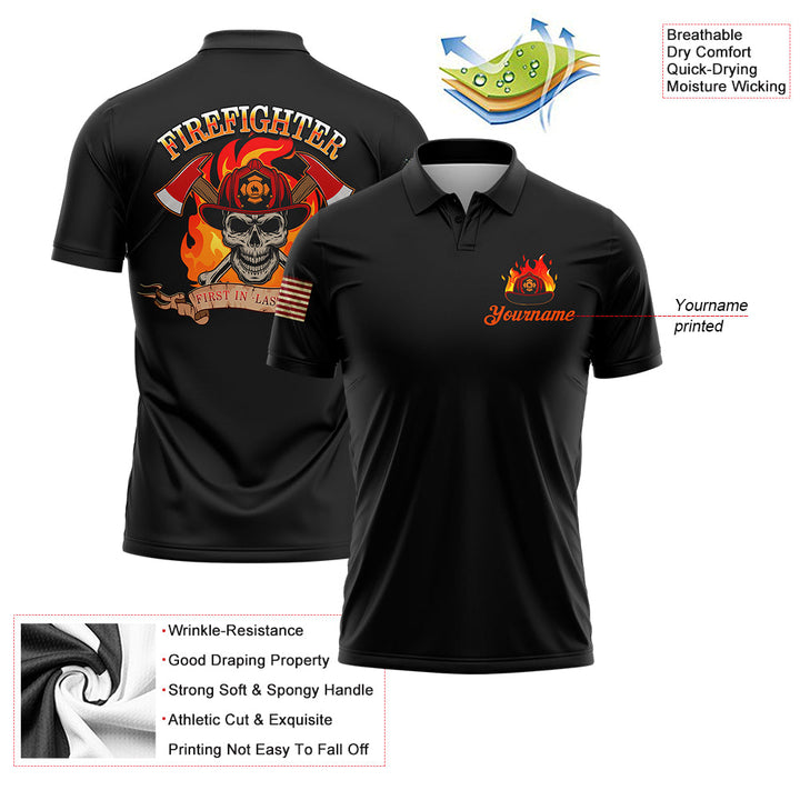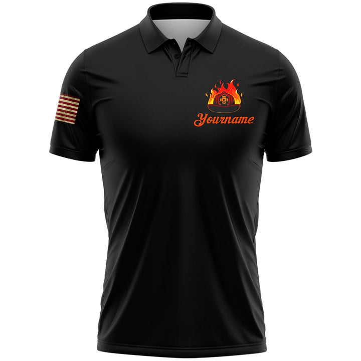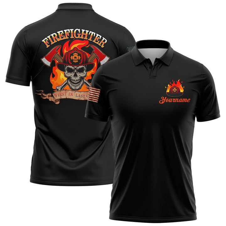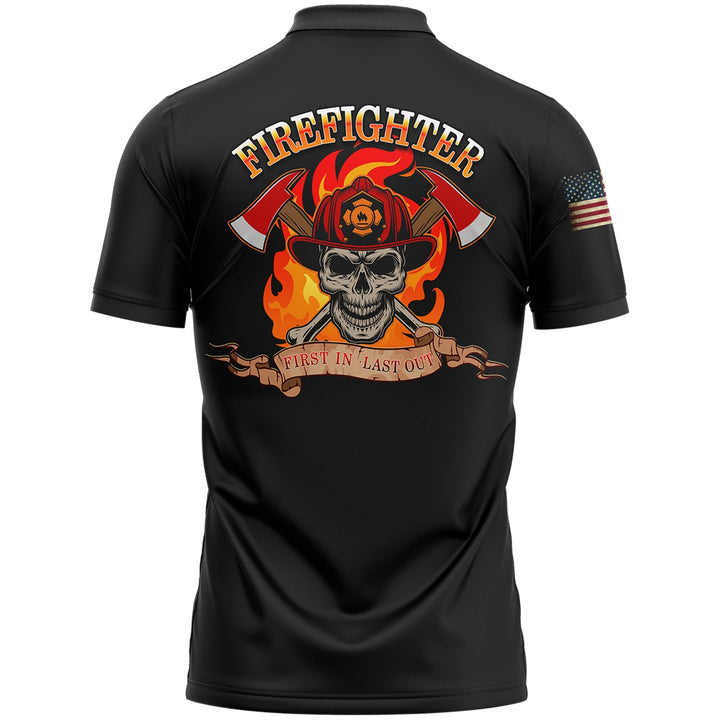 Firefighter First In Last Out Custom Black American Patriot Name Golf Polo Shirt
