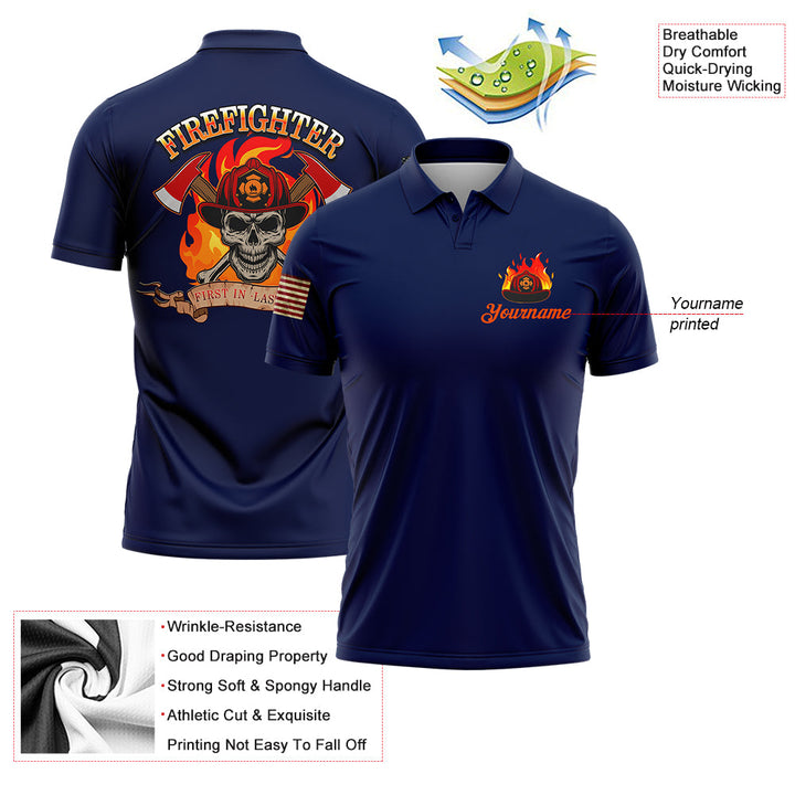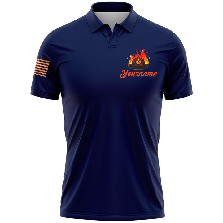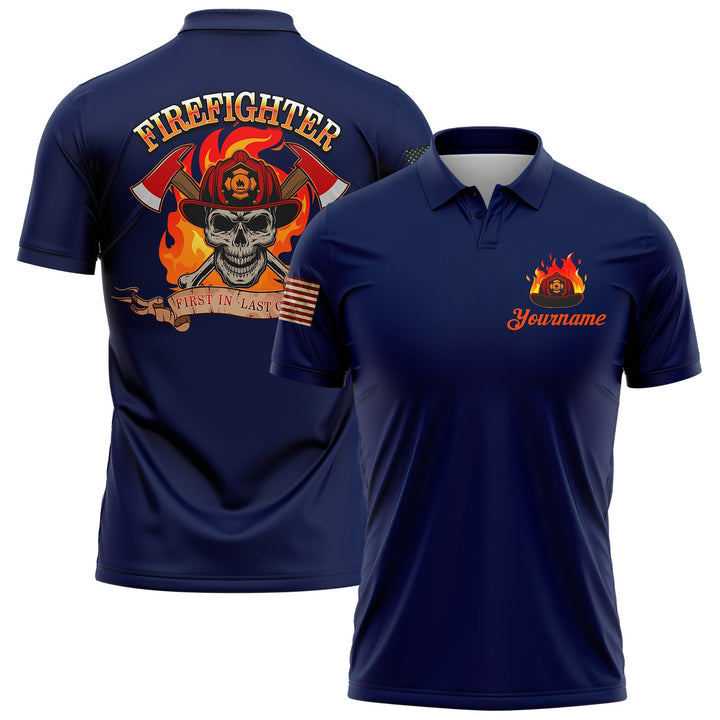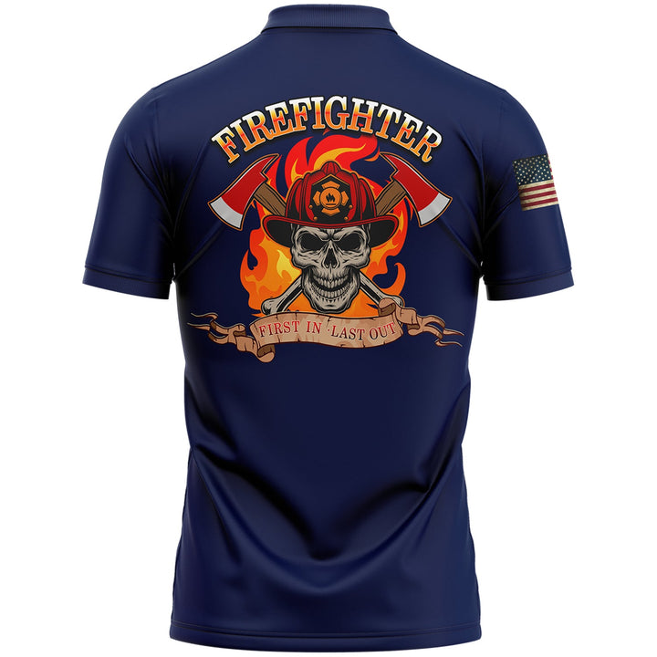 Firefighter First In Last Out Custom Navy American Patriot Name Golf Polo Shirt