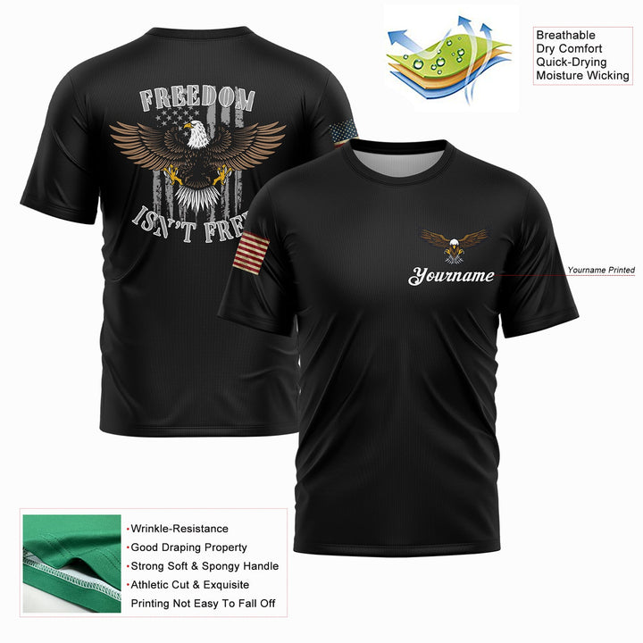 Freedom Isn't Free Custom Black Eagle American Patriot Name T-Shirt