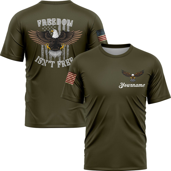 Freedom Isn't Free Custom Olive Eagle American Patriot Name T-Shirt