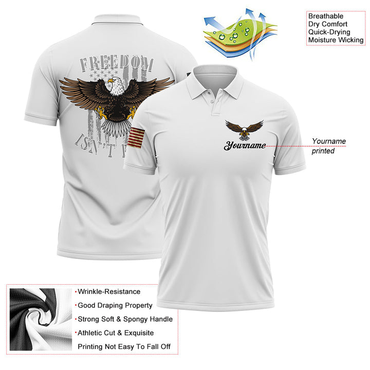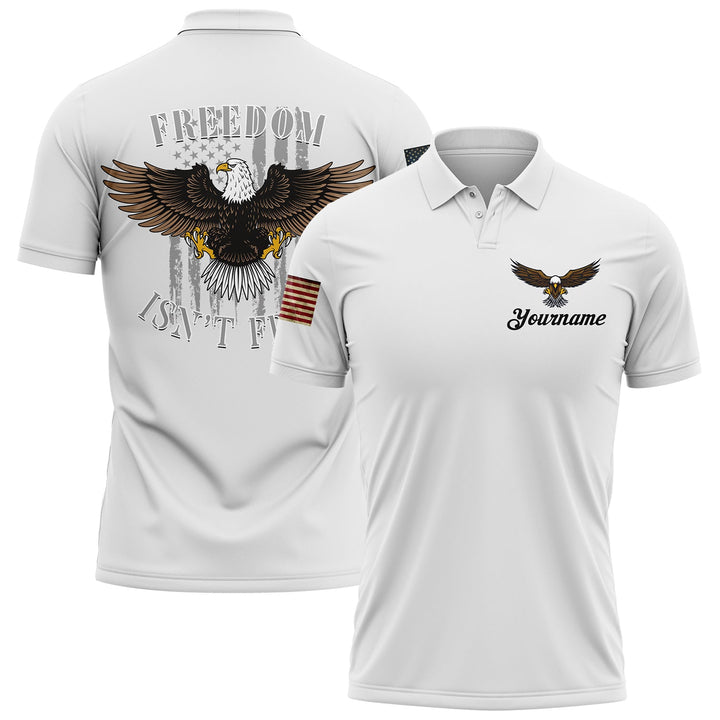 Freedom Isn't Free Custom White Eagle American Patriot Name Golf Polo Shirt