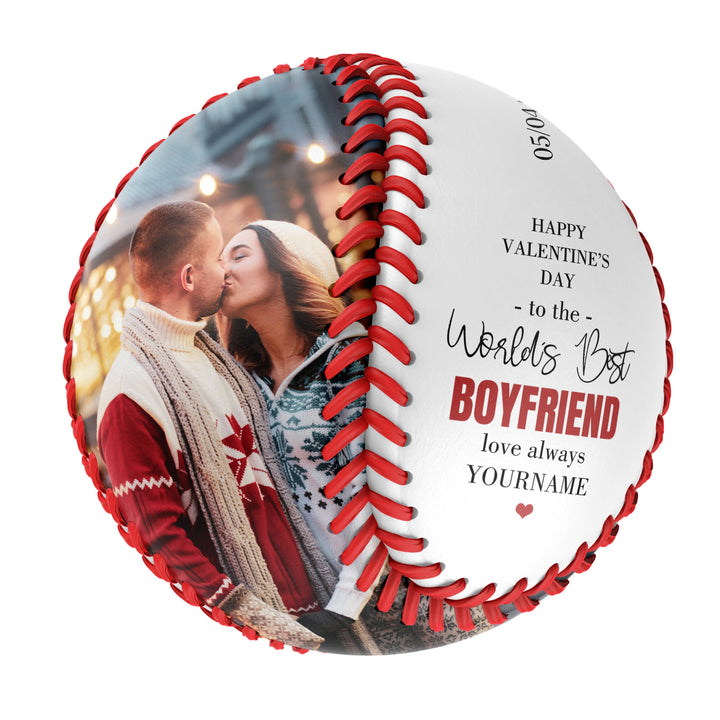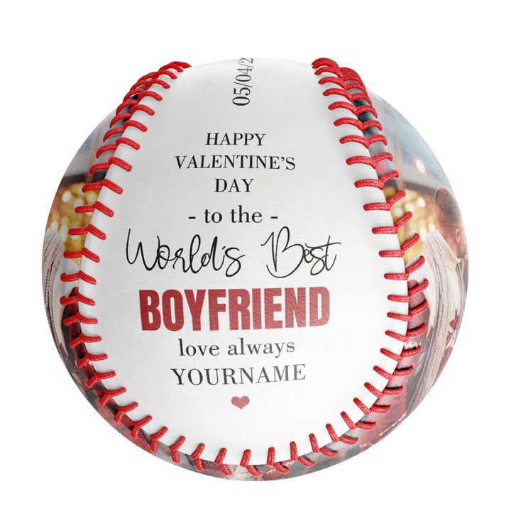 Happy Valentine's Day To The World‘s Best Boyfriend Personalized Anniversary Name Date Photo White Baseballs