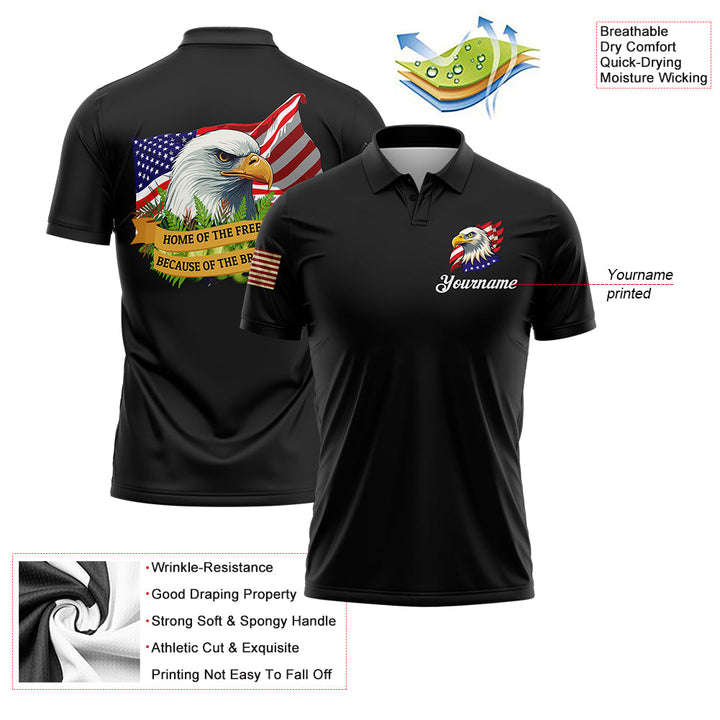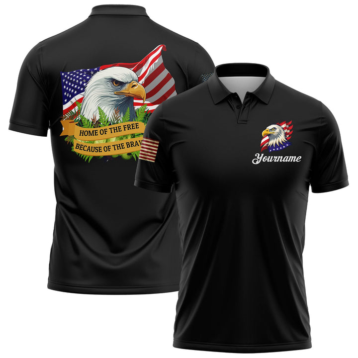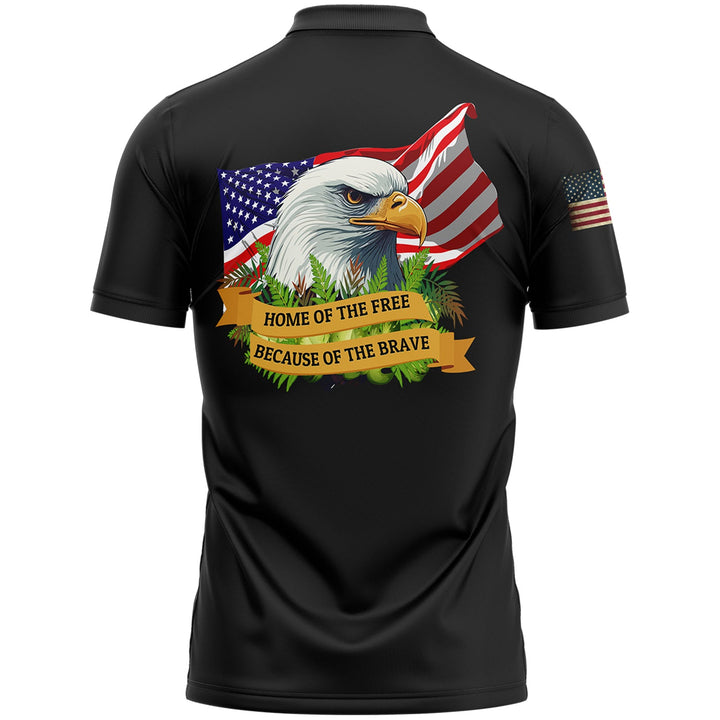Home Of The Free Because Of The Brave Custom Black American Patriot Name Golf Polo Shirt