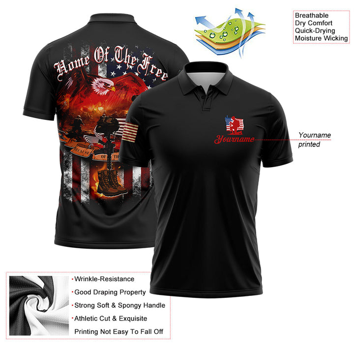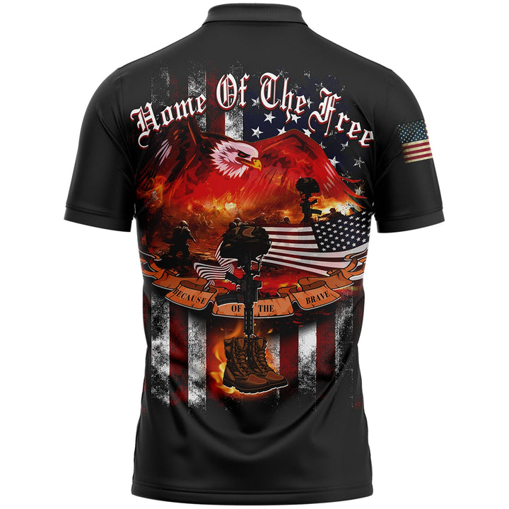 Home Of The Free Because Of The Brave Custom Black American Patriot Name Golf Polo Shirt