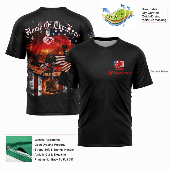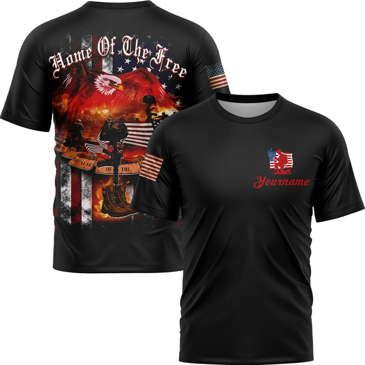 Home Of The Free Because Of The Brave Custom Black American Patriot Name T-Shirt