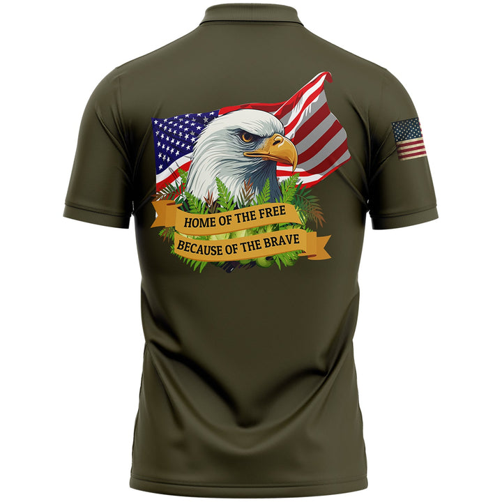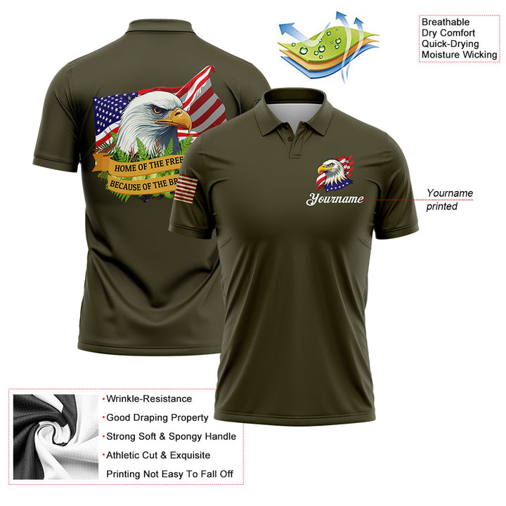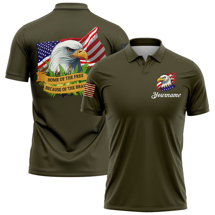 Home Of The Free Because Of The Brave Custom Olive American Patriot Name Golf Polo Shirt