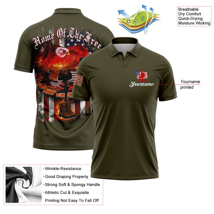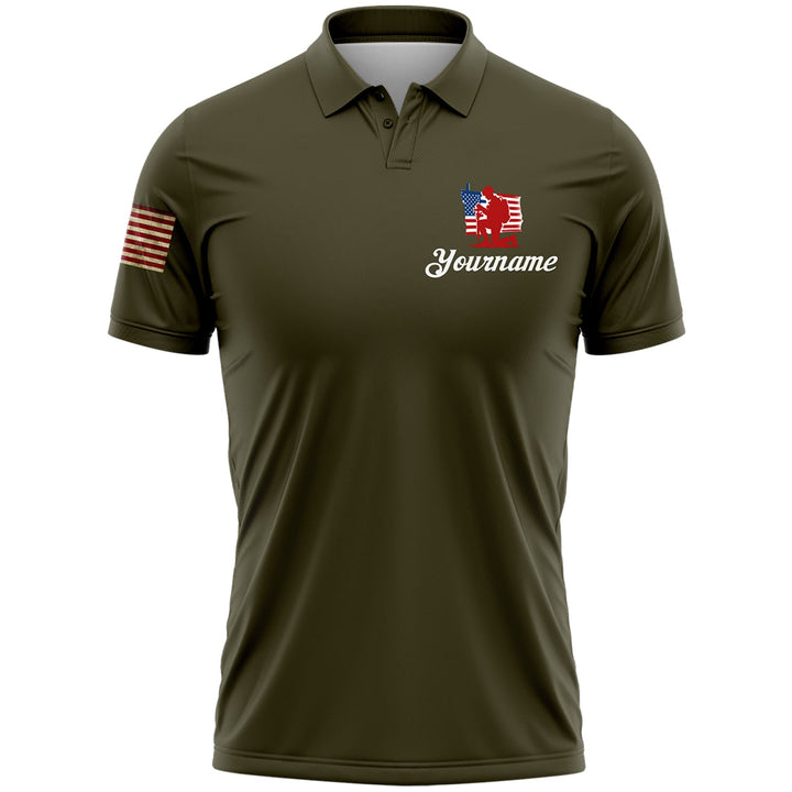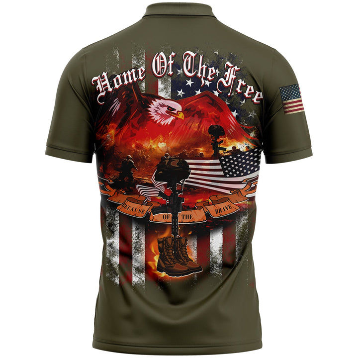 Home Of The Free Because Of The Brave Custom Olive American Patriot Name Golf Polo Shirt