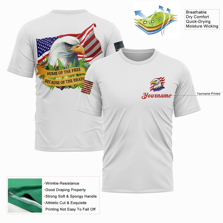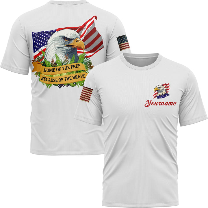 Home Of The Free Because Of The Brave Custom White American Patriot Name T-Shirt