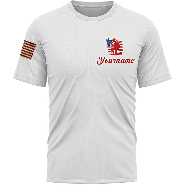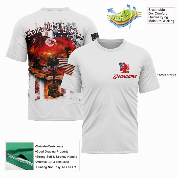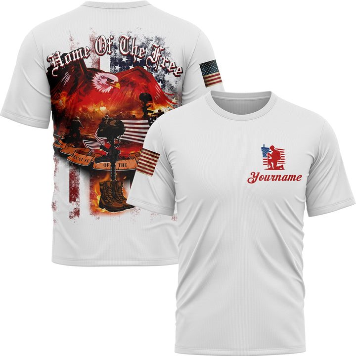 Home Of The Free Because Of The Brave Custom White American Patriot Name T-Shirt