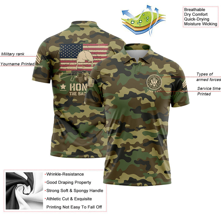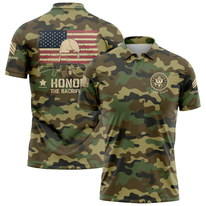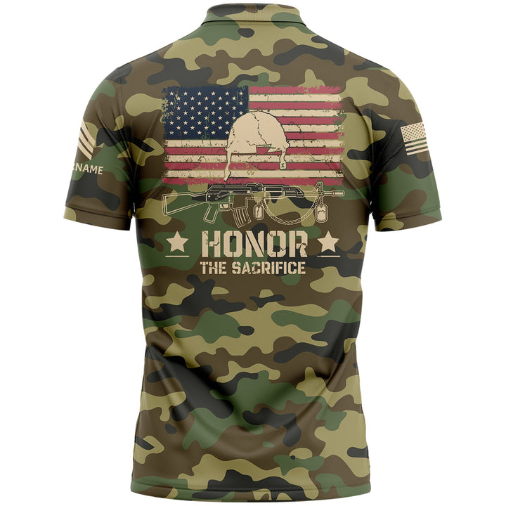 Honor The Sacrifice Custom Camo American Flay U.S. Army Military Sergeant Rank Veteran Name Memorial Day Golf Polo Shirt | Father's Day Gifts