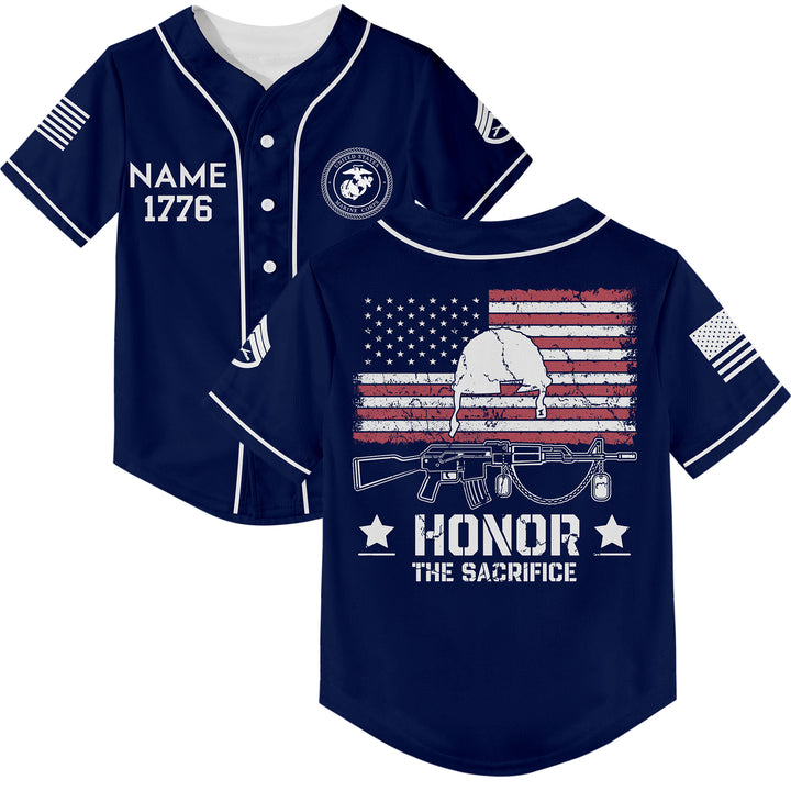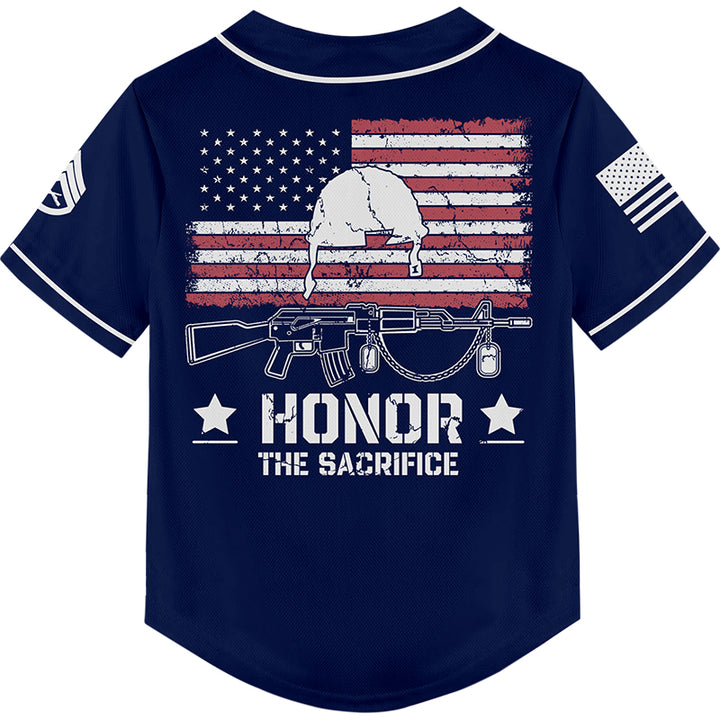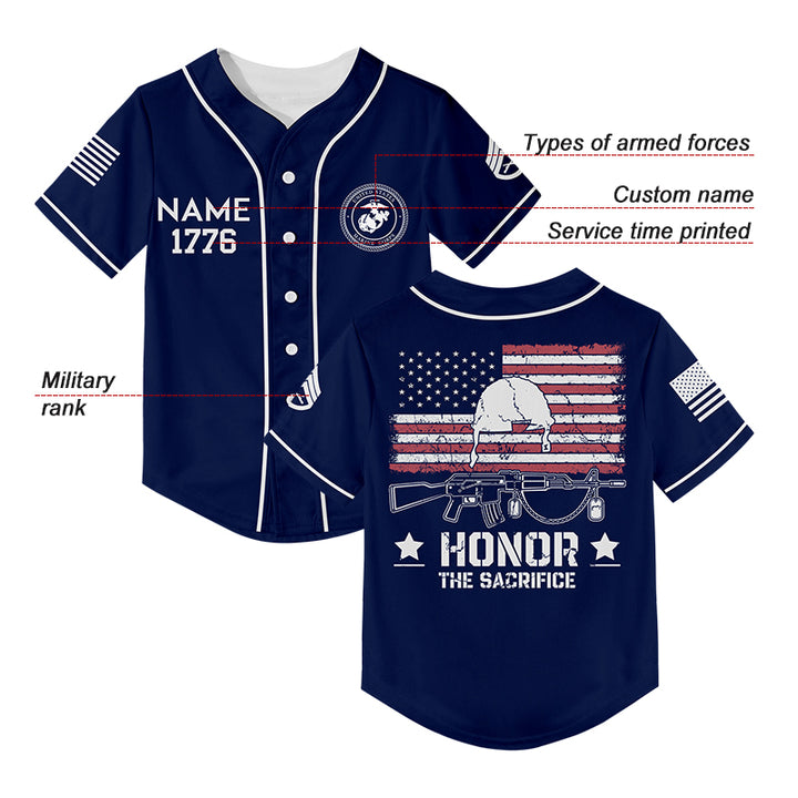 Honor The Sacrifice Custom Navy American Flay Military Rank Veteran Name Memorial Day Baseball Jersey