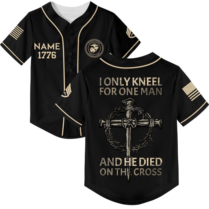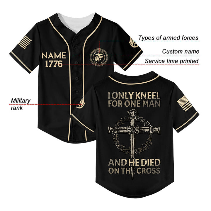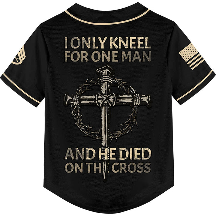 I Only kneel For One Man And He Died On The Cross Custom Black Military Rank Veteran Name Baseball Jersey