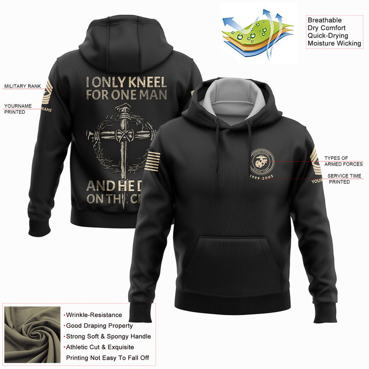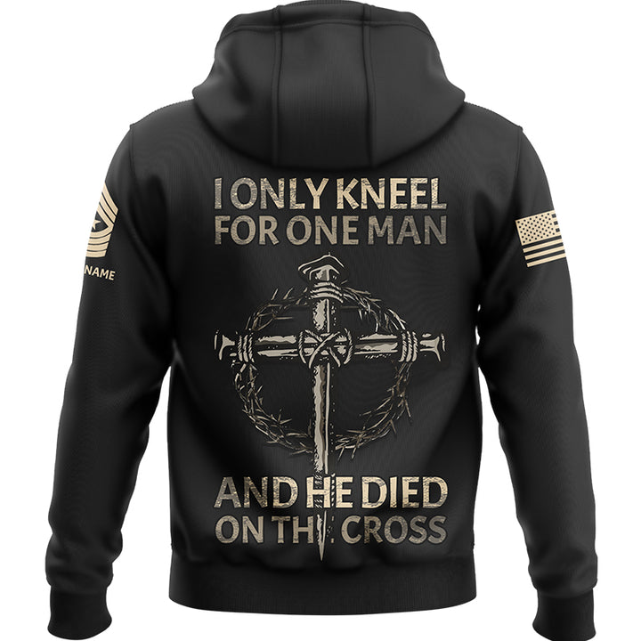 I Only kneel For One Man And He Died On The Cross Custom Black Military Rank Veteran Name Hoodie