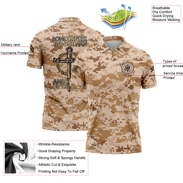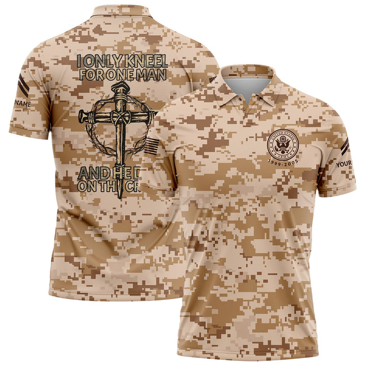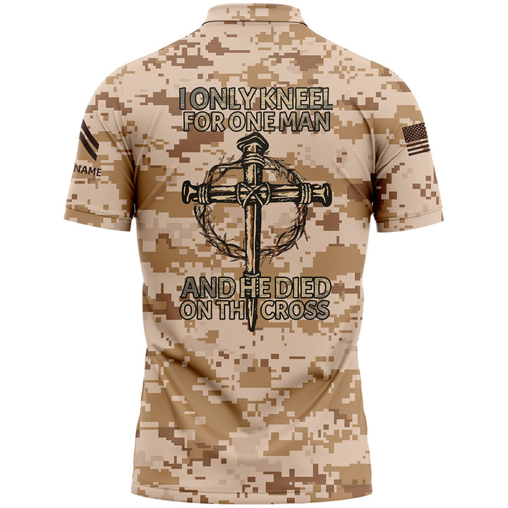 I Only kneel For One Man And He Died On The Cross Custom Camo U.S. Army Military Corporal Rank Veteran Name Golf Polo Shirt | Father's Day Gifts