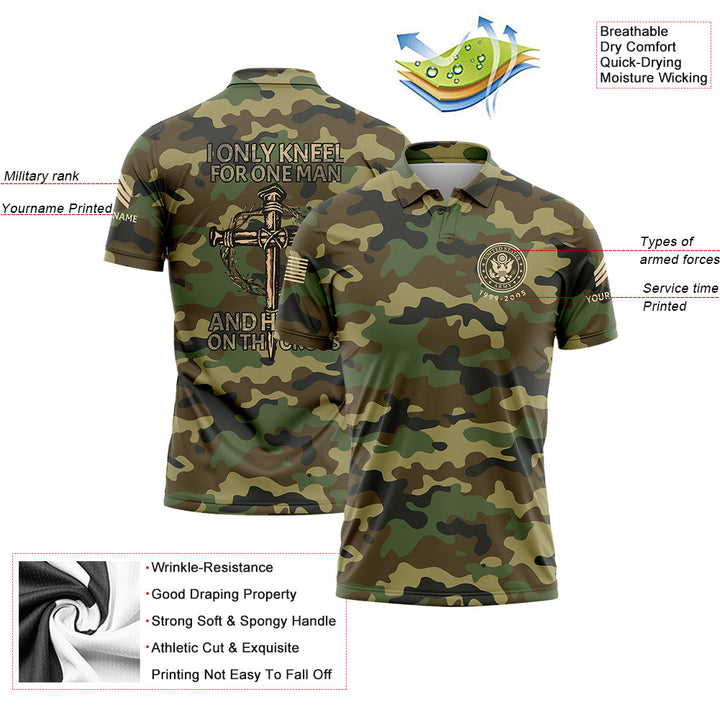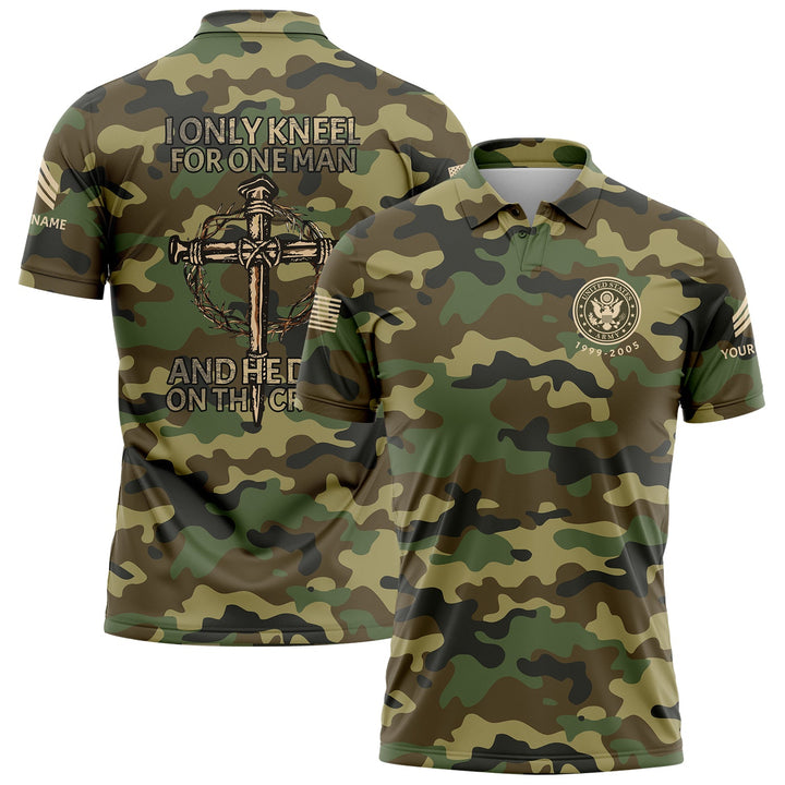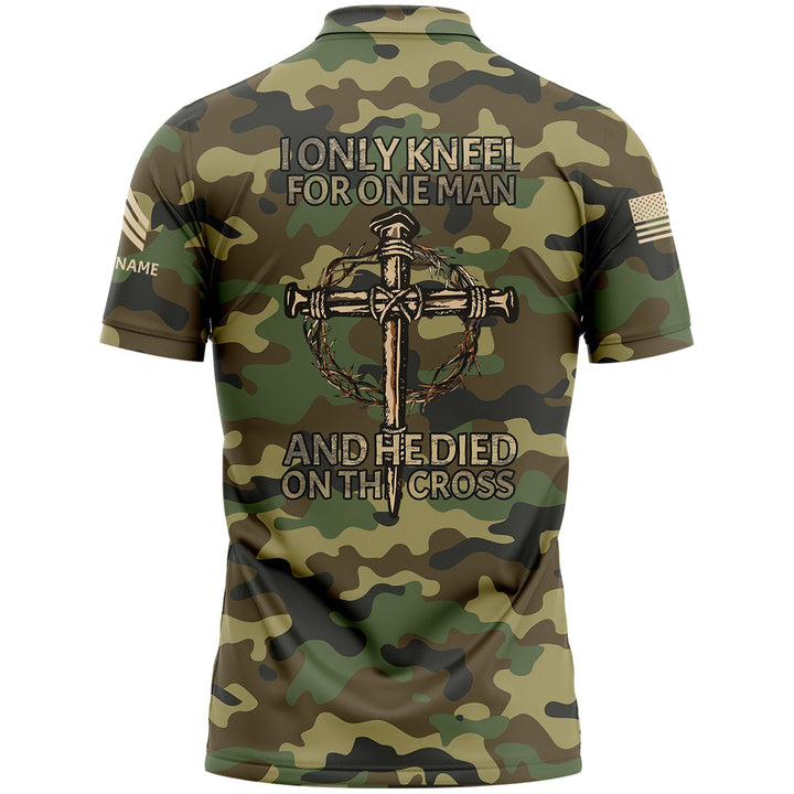 I Only kneel For One Man And He Died On The Cross Custom Camo U.S. Army Military Sergeant Rank Veteran Name Golf Polo Shirt | Father's Day Gifts