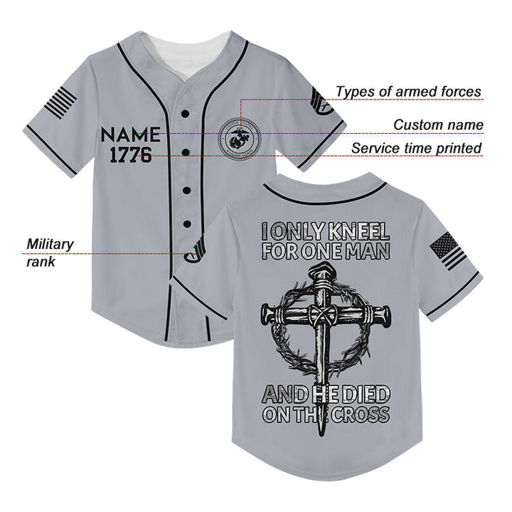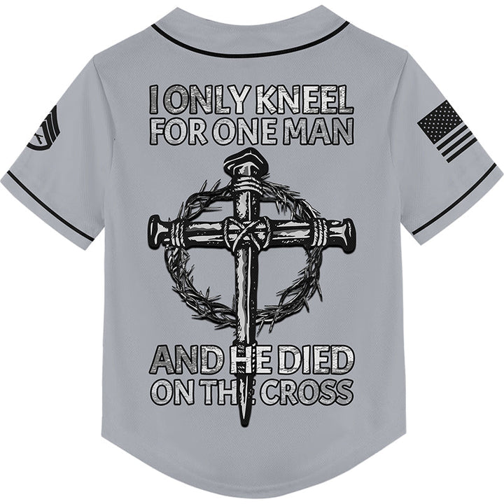 I Only kneel For One Man And He Died On The Cross Custom Grey Military Rank Veteran Name Baseball Jersey