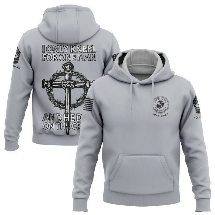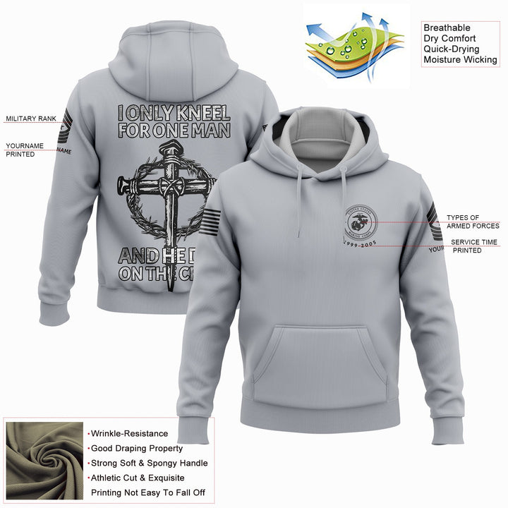 I Only kneel For One Man And He Died On The Cross Custom Grey Military Rank Veteran Name Hoodie