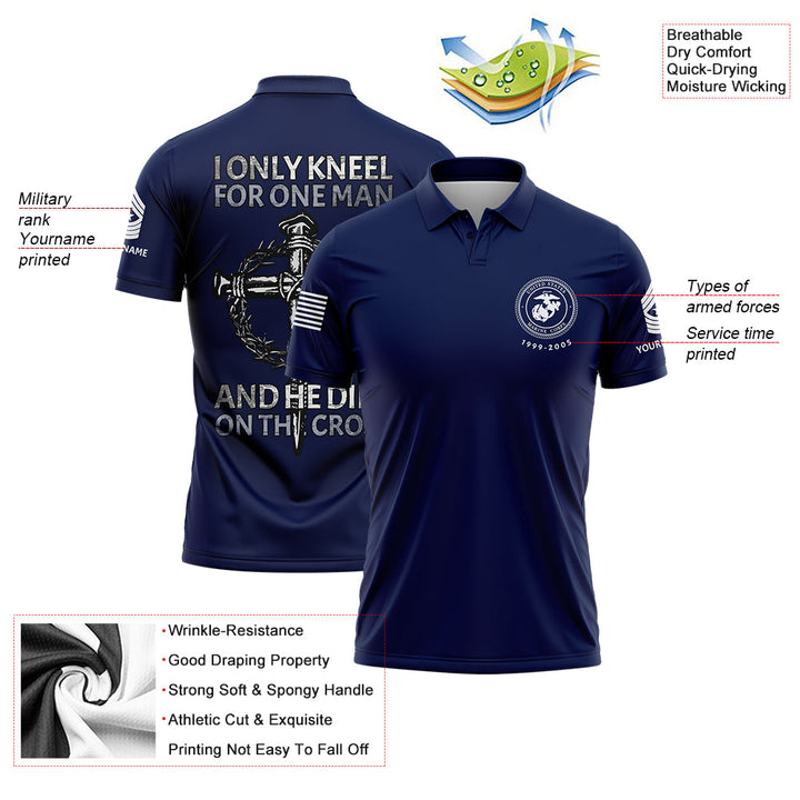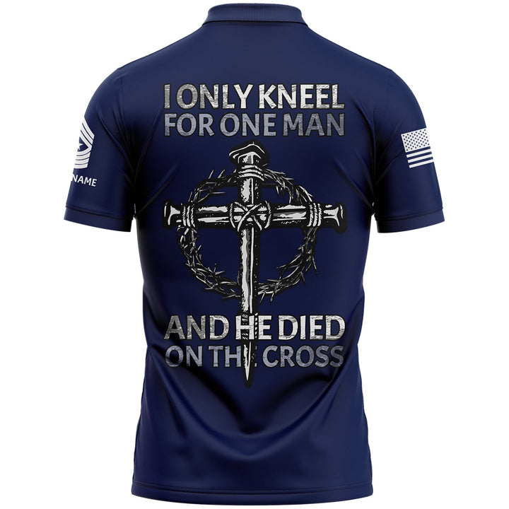I Only kneel For One Man And He Died On The Cross Custom Navy Military Rank Veteran Name Golf Polo Shirt