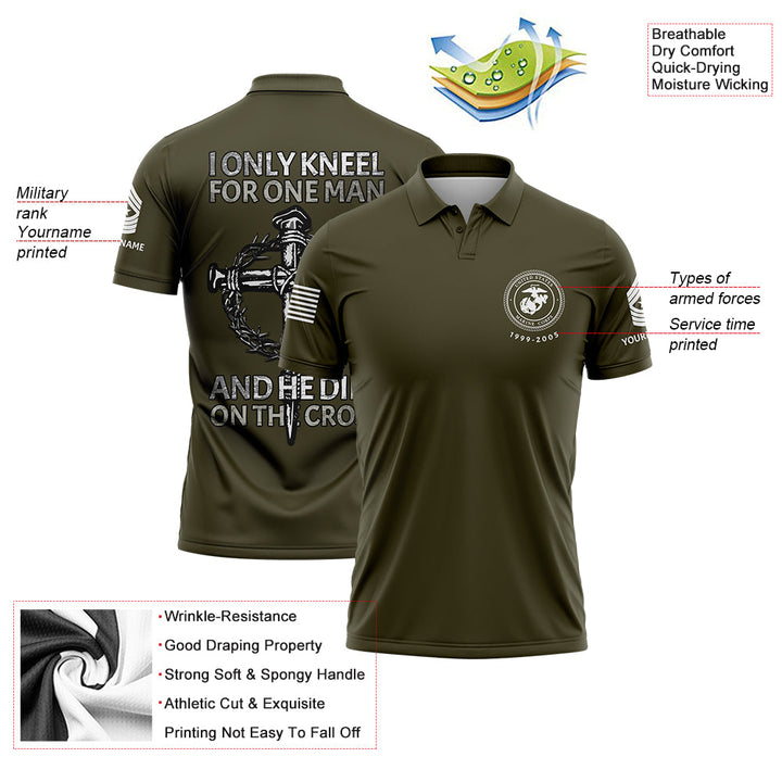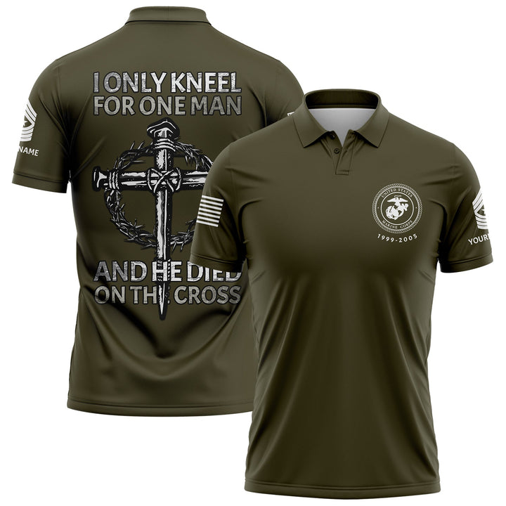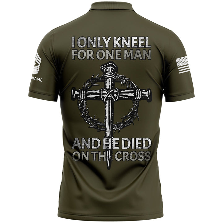 I Only kneel For One Man And He Died On The Cross Custom Olive Military Rank Veteran Name Golf Polo Shirt