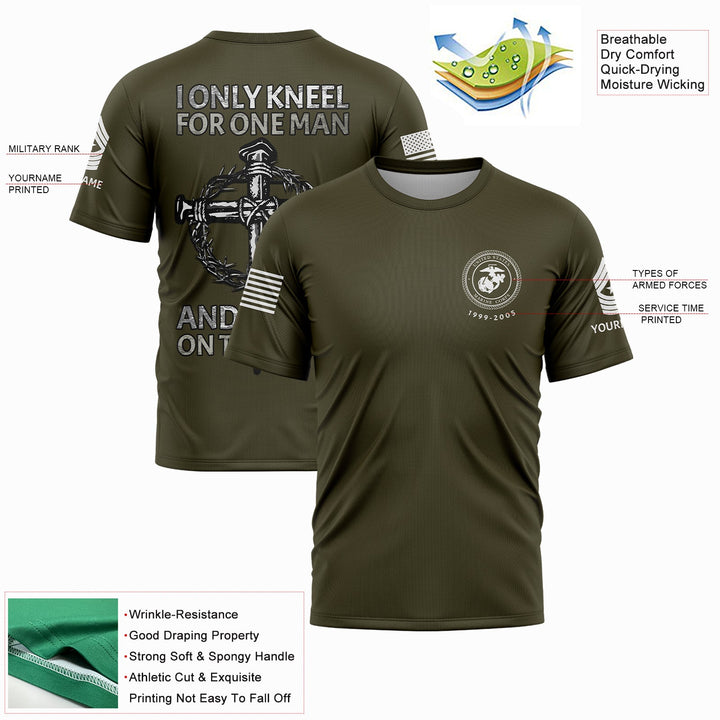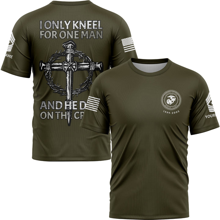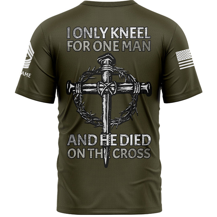 I Only kneel For One Man And He Died On The Cross Custom Olive Military Rank Veteran Name T-Shirt