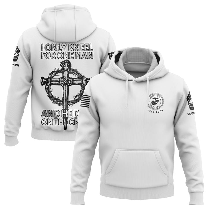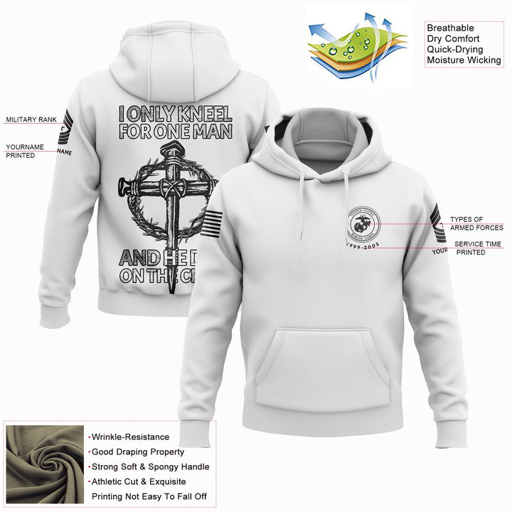 I Only kneel For One Man And He Died On The Cross Custom White Military Rank Veteran Name Hoodie