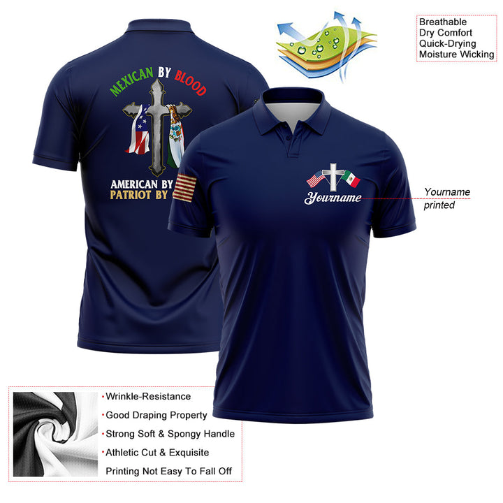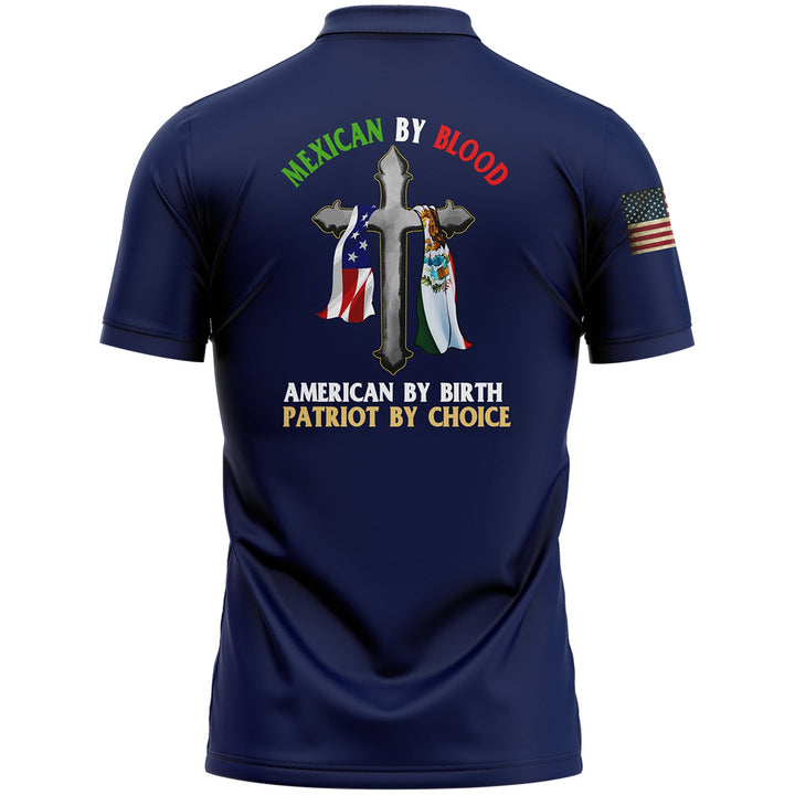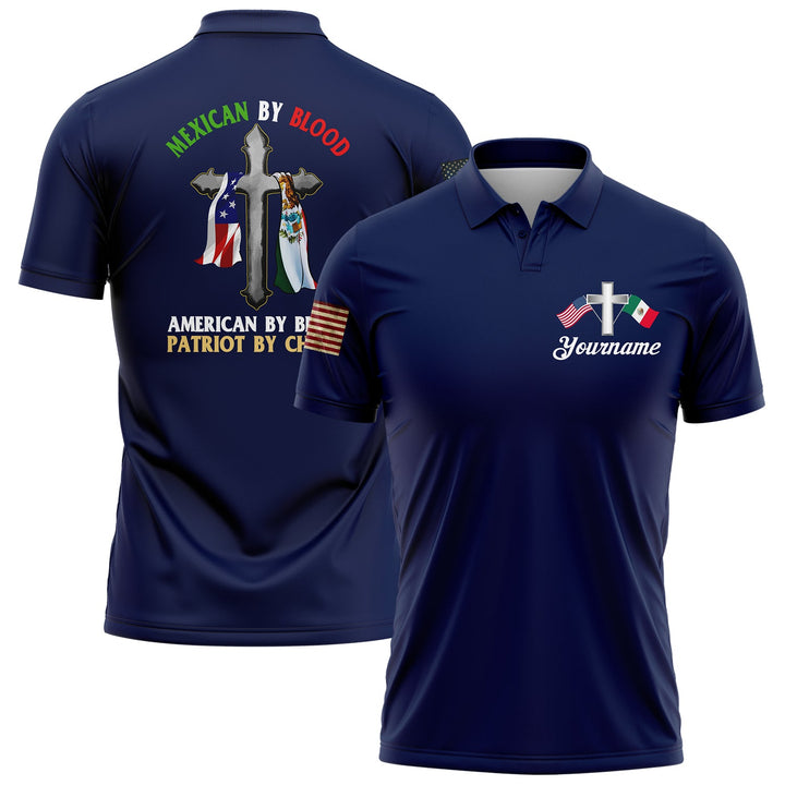 Mexican By Blood American By Birth Patriot By Choice Custom Navy American Patriot Name Golf Polo Shirt