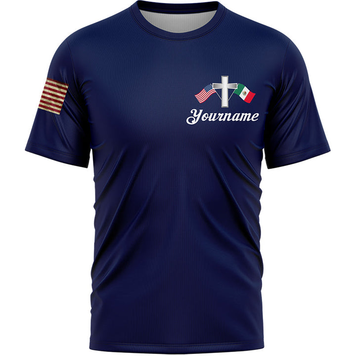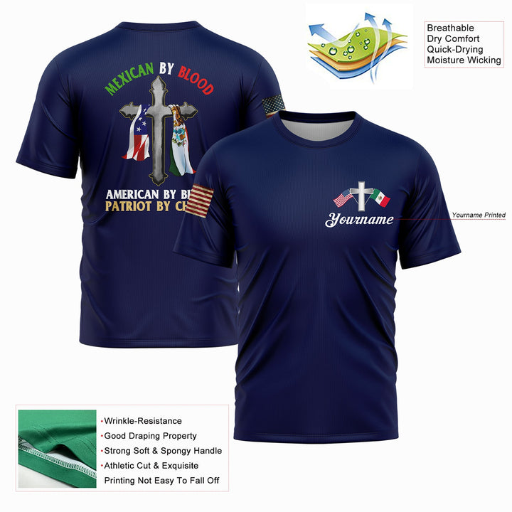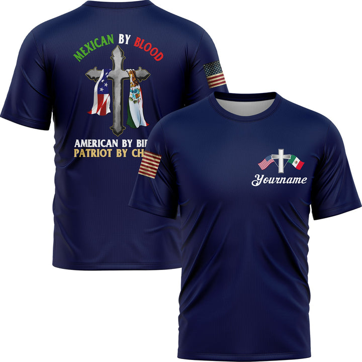 Mexican By Blood American By Birth Patriot By Choice Custom Navy American Patriot Name T-Shirt