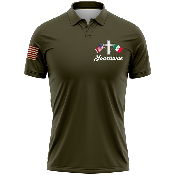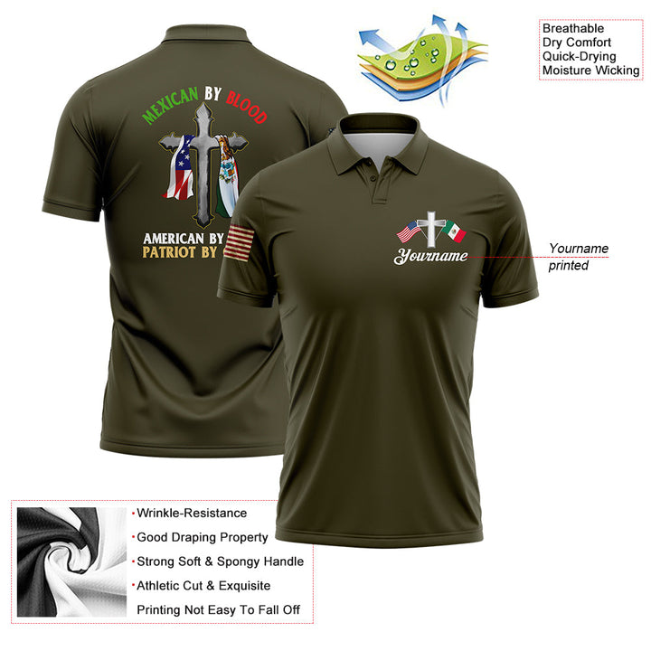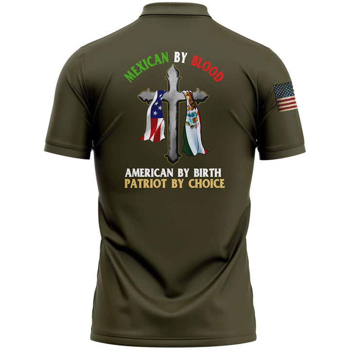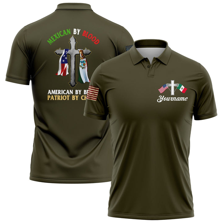 Mexican By Blood American By Birth Patriot By Choice Custom Olive American Patriot Name Golf Polo Shirt