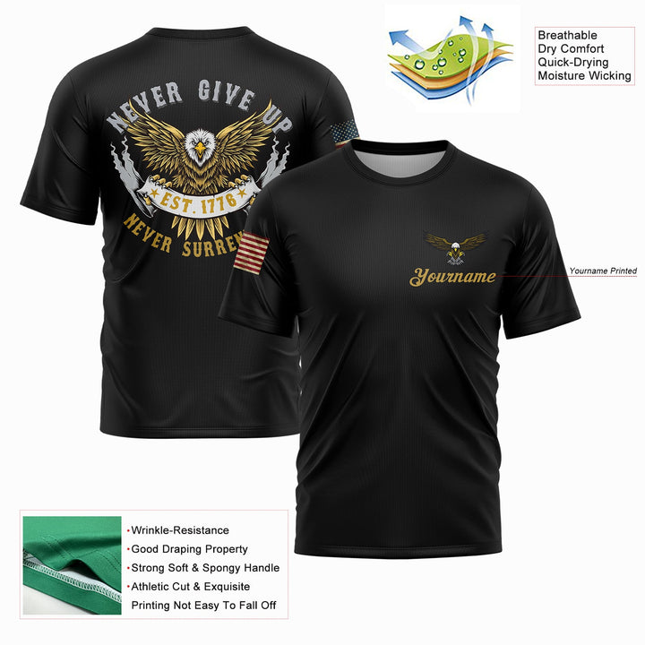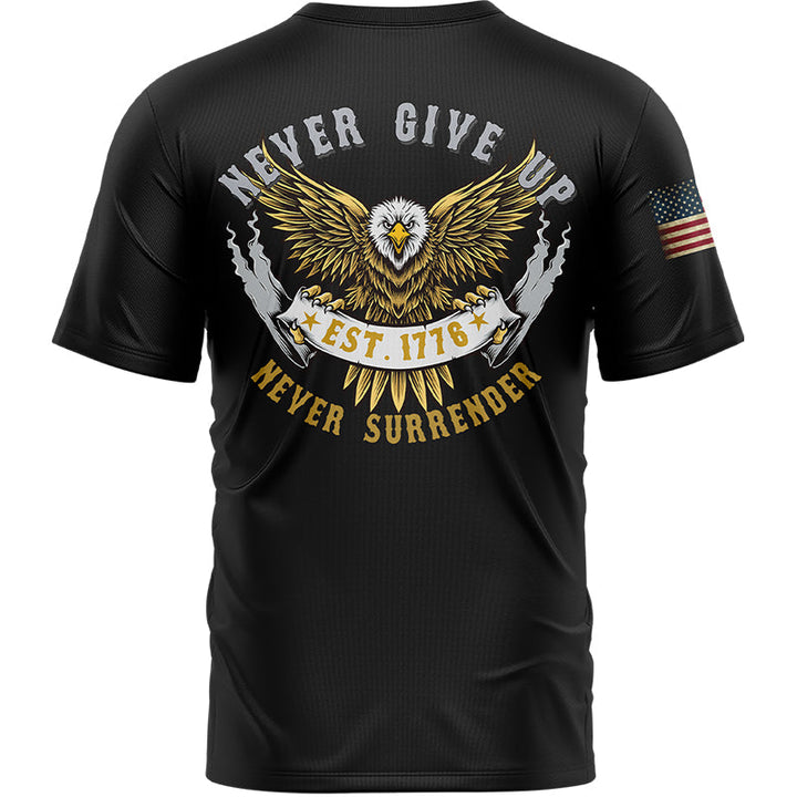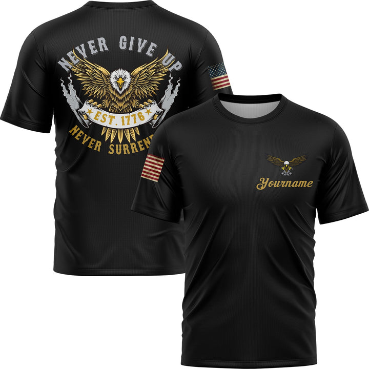 Never Give Up Never Surrender Custom Black American Patriot Name T-Shirt