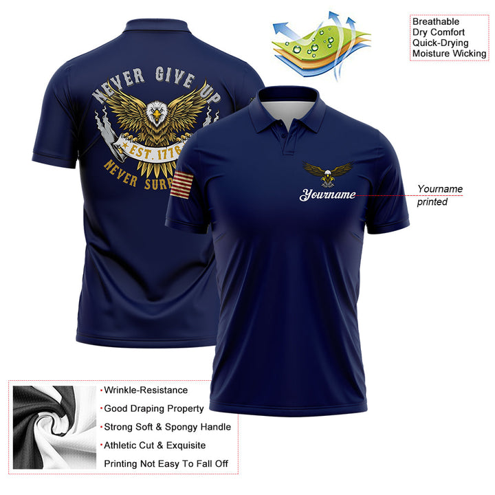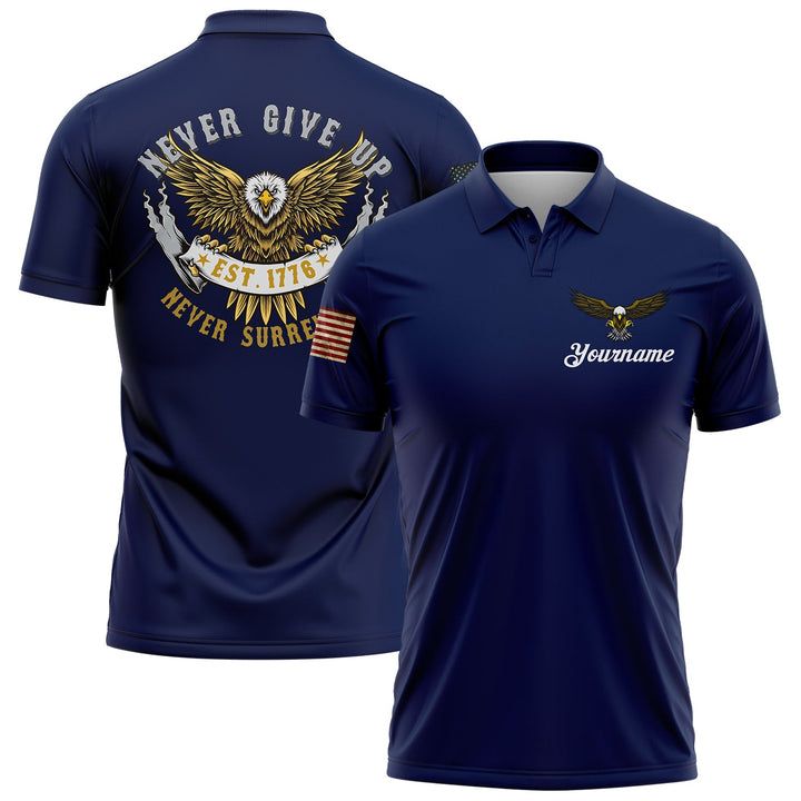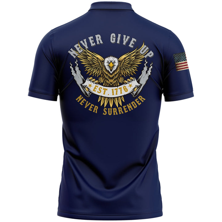 Never Give Up Never Surrender Custom Navy American Patriot Name Golf Polo Shirt