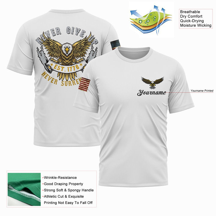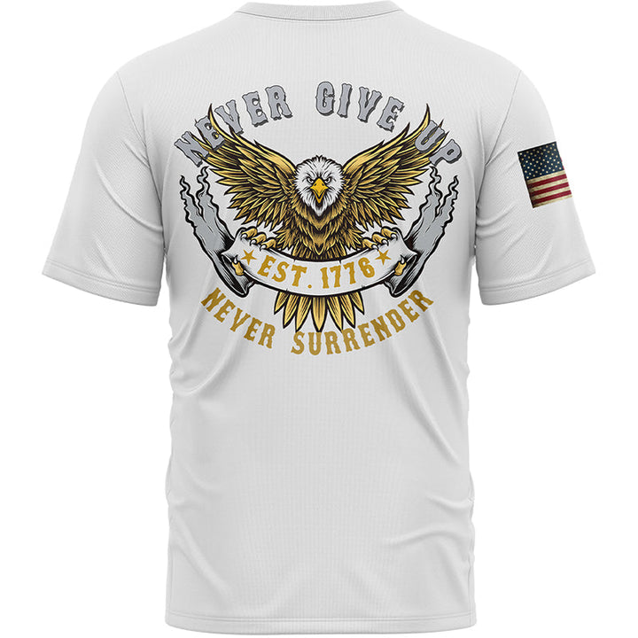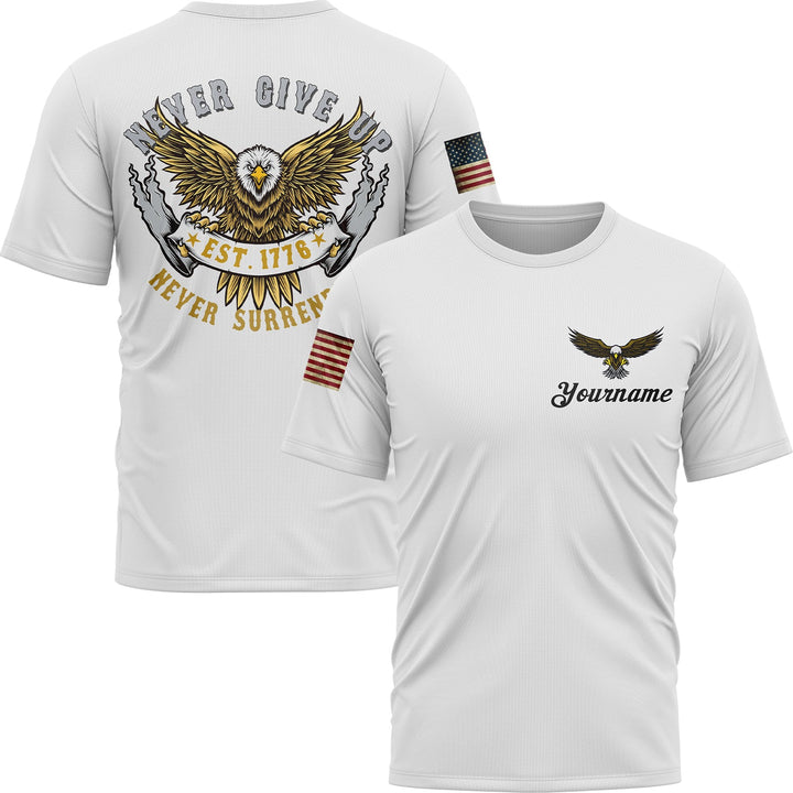 Never Give Up Never Surrender Custom White American Patriot Name T-Shirt