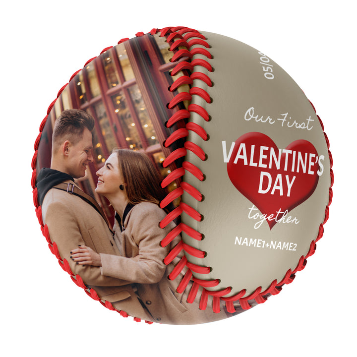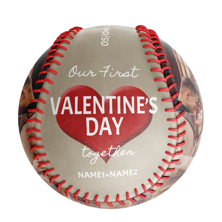 Our First Valentine's Day Together Personalized Anniversary Name Date Photo Khaki Baseballs